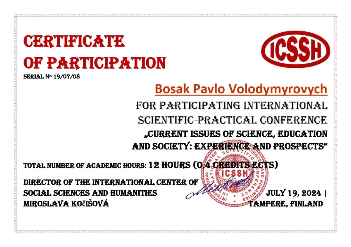"Львівська політехніка" № 4136-3-10 від 31.10.2019 року, довідка про проходження стажування НУ "Львівська політехніка" № 891 від 22.01.2020 року. 2. З 01.03.2023 року по 30.06.2023 рроку проходив науково-педагогічне стажування у Wyższej Szkole Edukacja w Sporcie (м. Варшава, Польща). 3. Стажування з 30.09. 2024 року по 12.10.2024 року на посаді помічника начальника зміни (з питань оперативного реагування) оперативно-координаційного центру ГУ ДСНС України у Миколаївській області з метою набуття практичного досвіду щодо ліквідації наслідків збройної агресії та впровадження цього досвіду в освітній процес ЛДУБЖД Основні публікації: