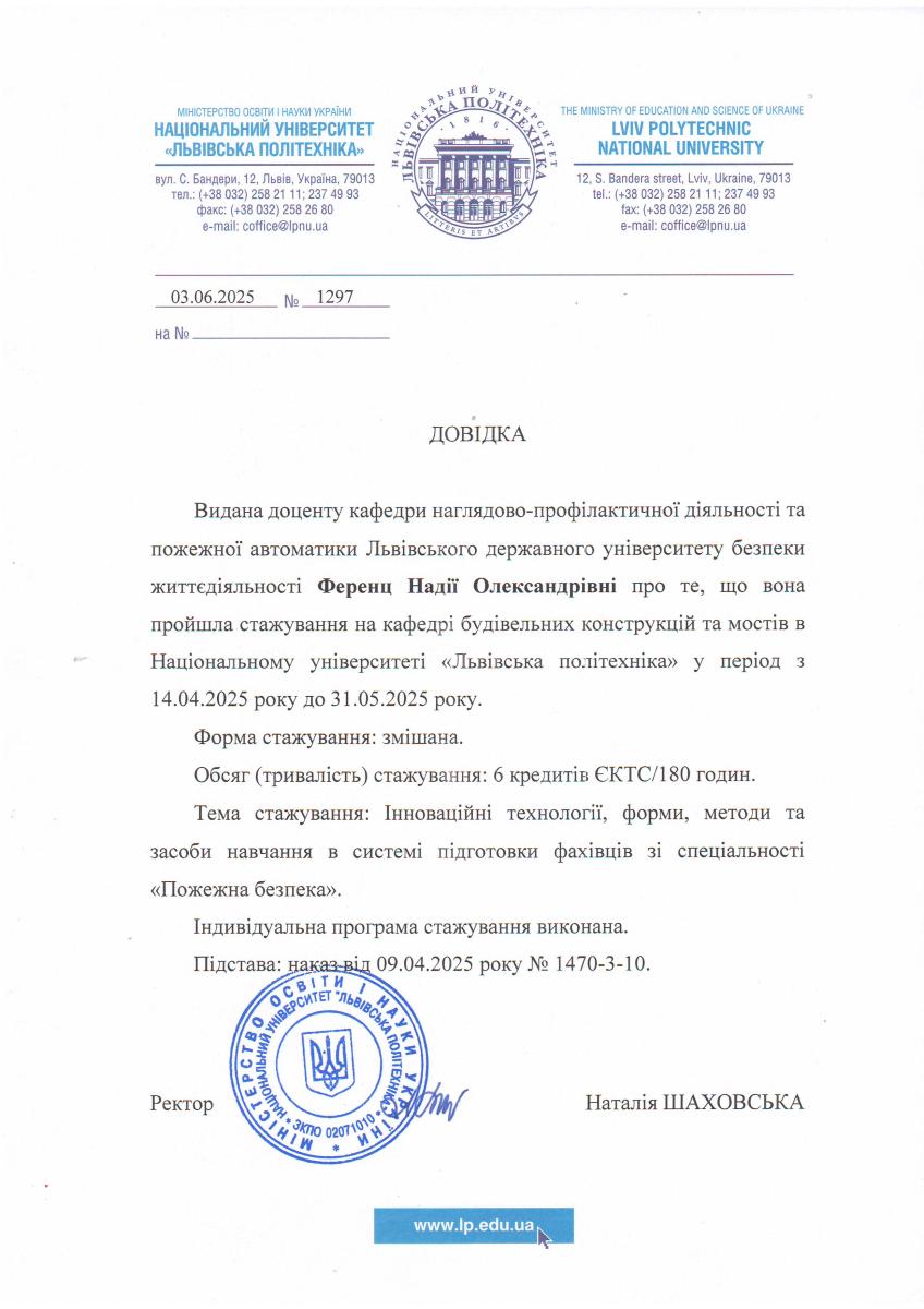 У 2025 р. завершила стажування в Національному університеті Львівська політехніка.