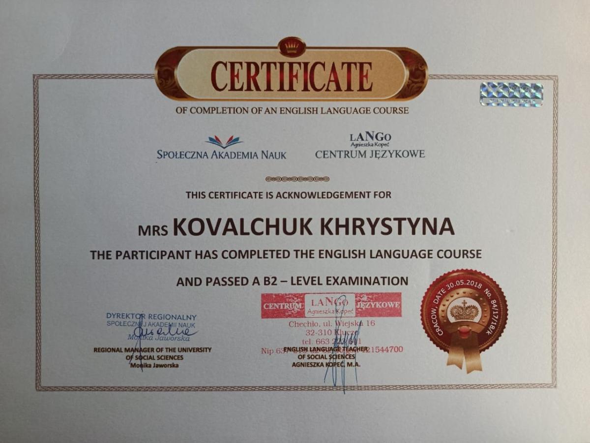 Лютий 2006 р. - червень 2007 р. навчання у Львівській комерційній академії за спеціальністю “Експертиза товарів та послуг” та здобула кваліфікацію магістра з експертизи товарів та послуг, викладача