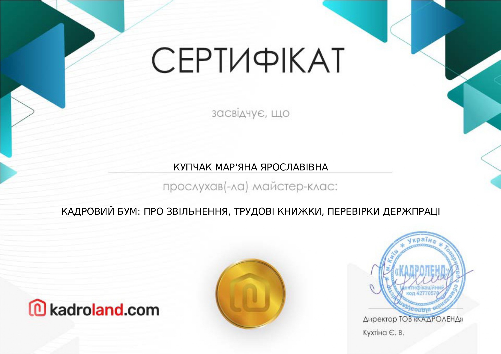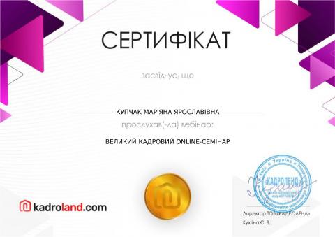 - Онлайн-курси на кадровій освітній платформі: Кадрова Відеоплатформі №1 ([email protected]): «Великий Кадровий Online-cемінар», що відбувся 25 червня 2020;