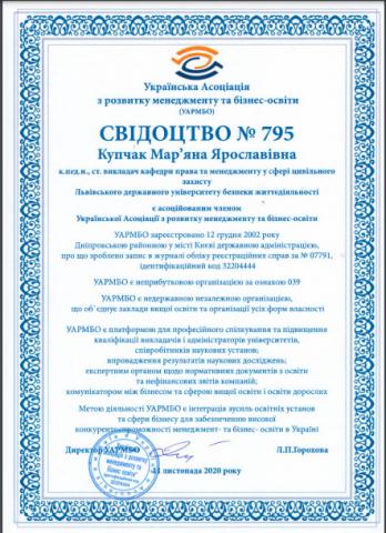 викладач кафедри управління, правового забезпечення та дізнання Львівського державного університету безпеки життєдіяльності |