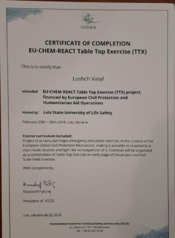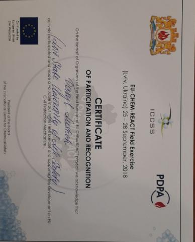 У 2018 році взяв участь у Міжнародних навчаннях EU-CHEM-REACT (м. Львів, Україна).