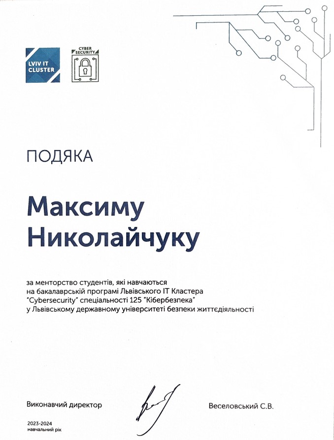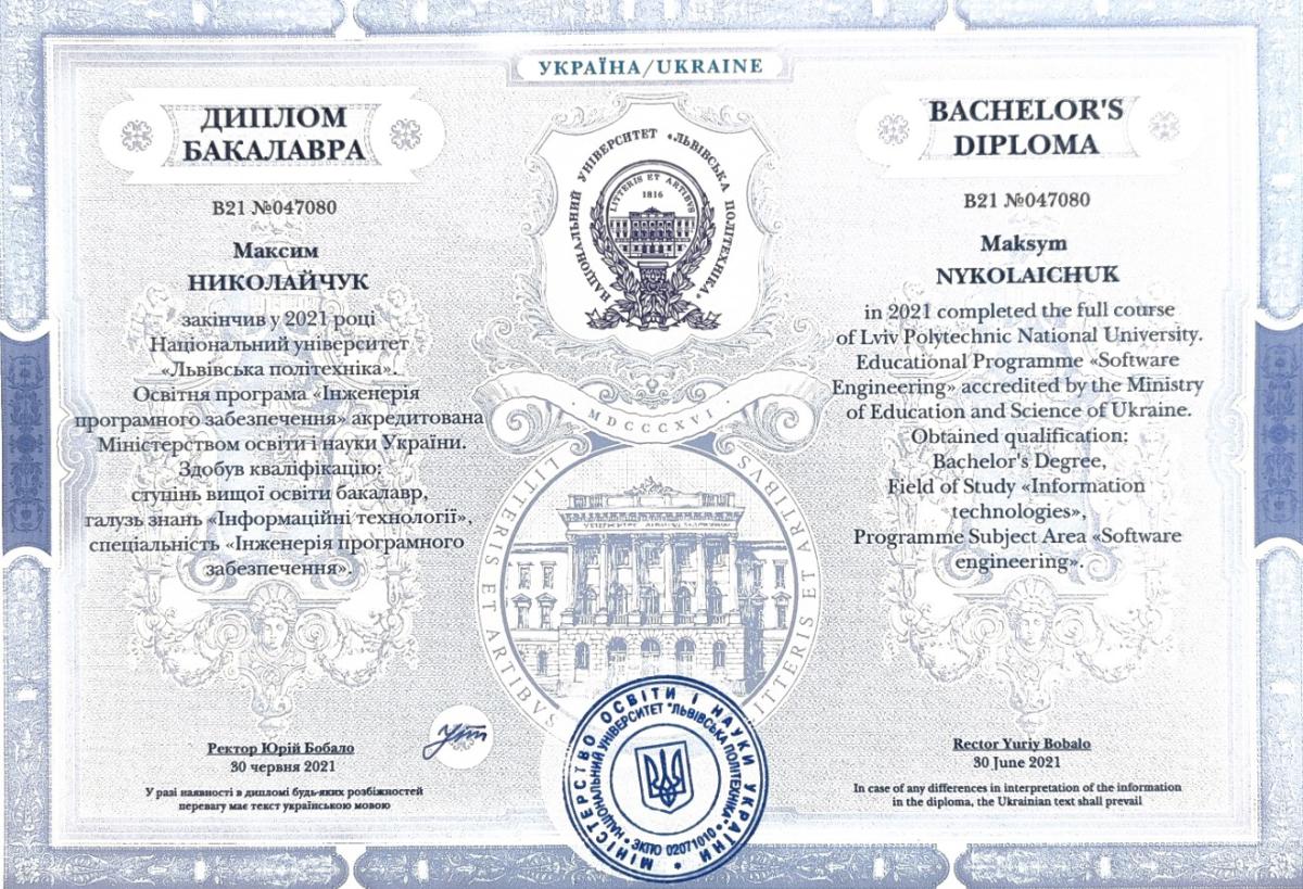 У 2017 році до Національного університету "Львівська Політехніка" на кафедру програмного забезпечення, інституту «Ком’ютерних наук та інформаційних технологій» на спеціальність 121 “Інженерія програмного забезпечення”.