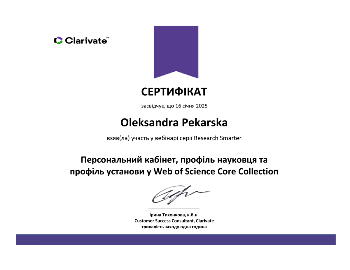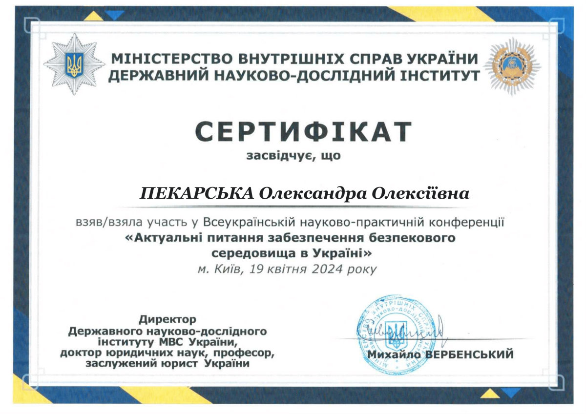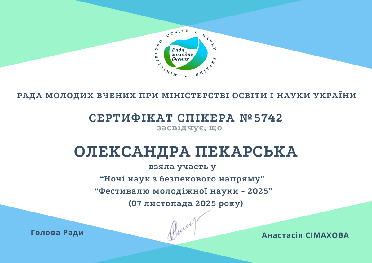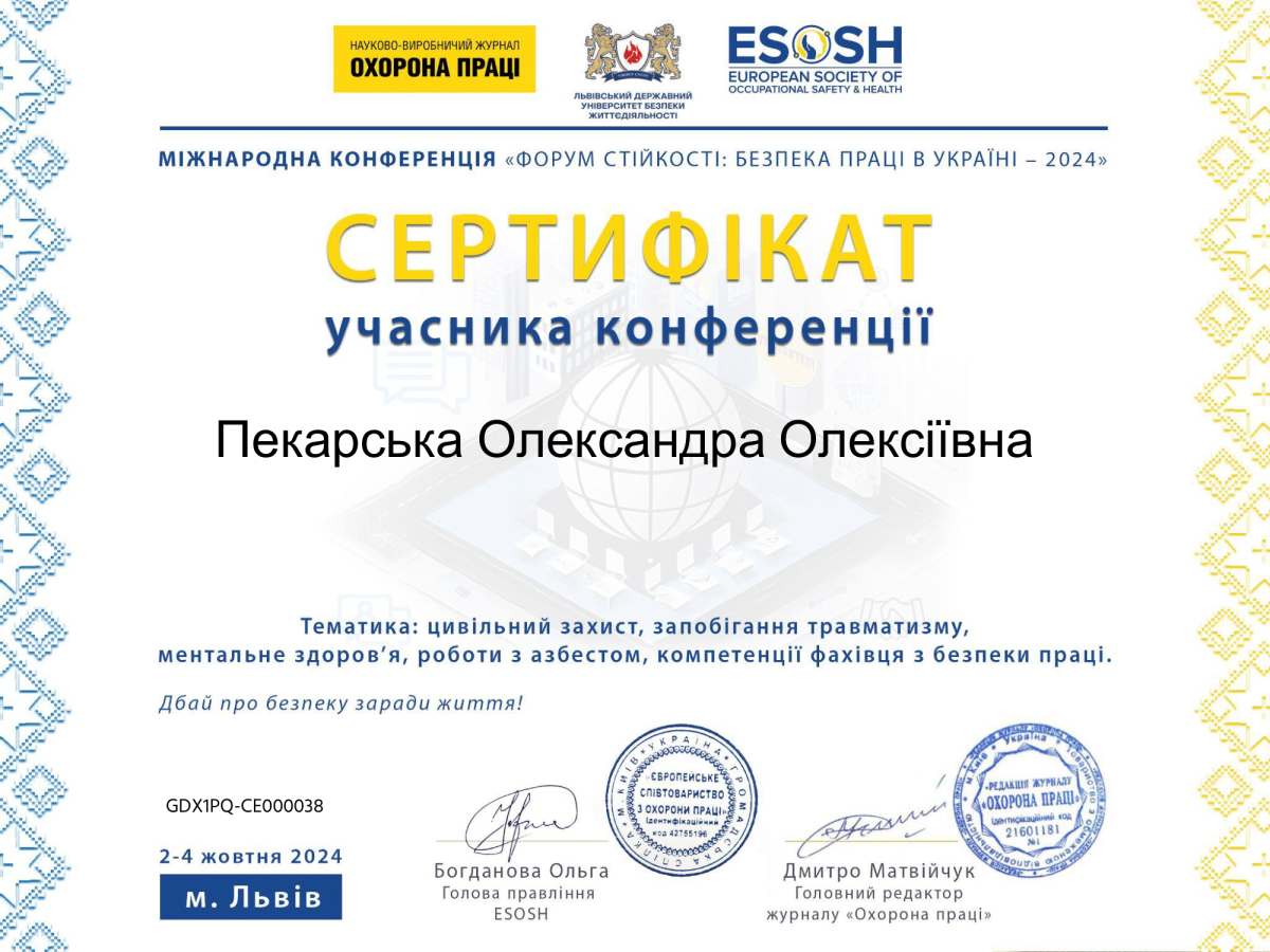 | Alma mater: | Львівський державний університет безпеки життєдіяльності (2017-2021, 2021-2023 рр.) |