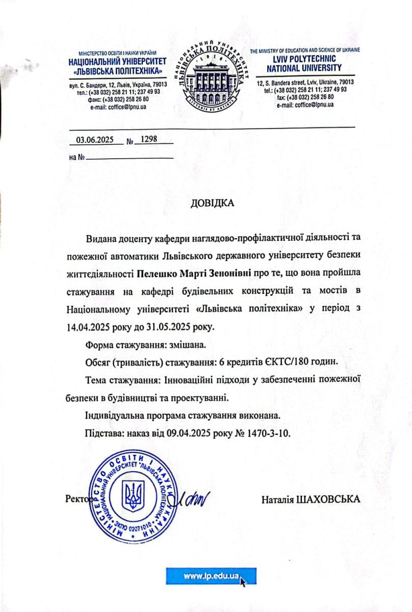 З 15 вересня 2021 року до 15 грудня 2021 року пройшов стажування на кафедрі електромехатроніки та комп’ютеризованих електромеханічних систем у Національному університеті “Львівська політехніка”.