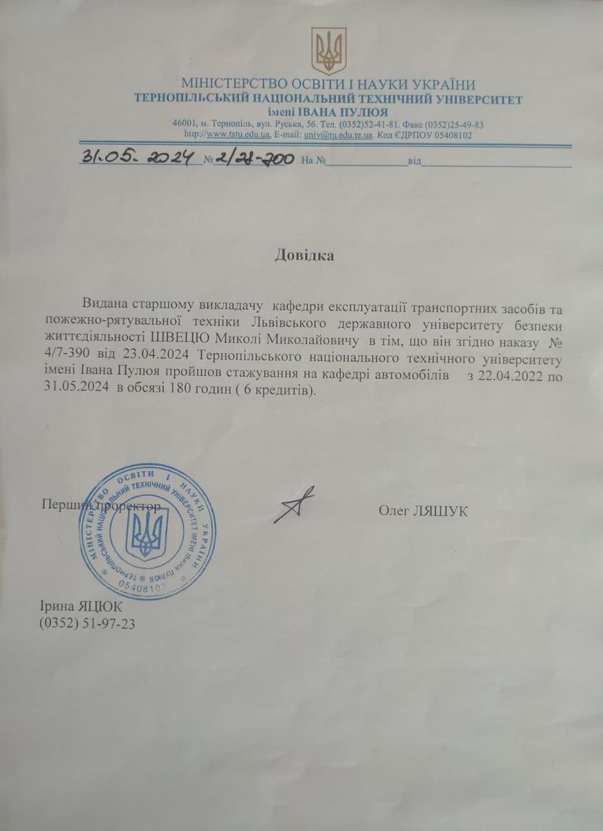 З січня 2024 року по теперешній час старший викладач кафедри експлуатації транспортних засобів та пожежно-рятувальної техніки Львівського державного університету безпеки життєдіяльності.