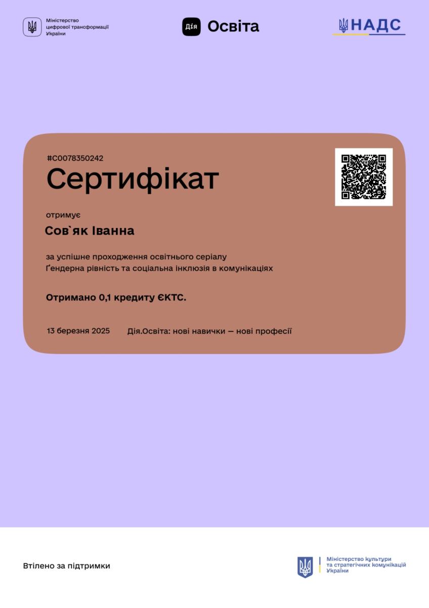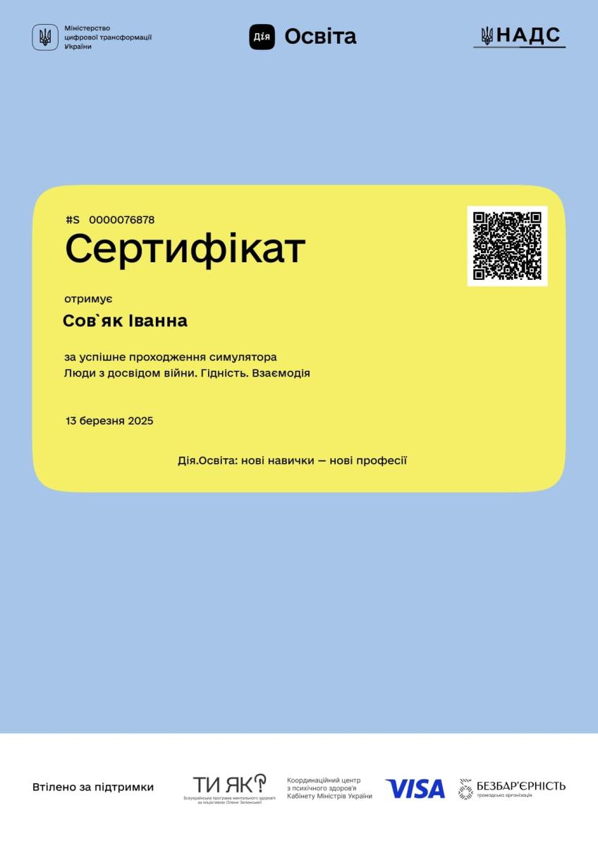 Посада: старший викладач кафедри Вища освіта: за спеціальністю «Математика» (2020), кваліфікація – викладач |