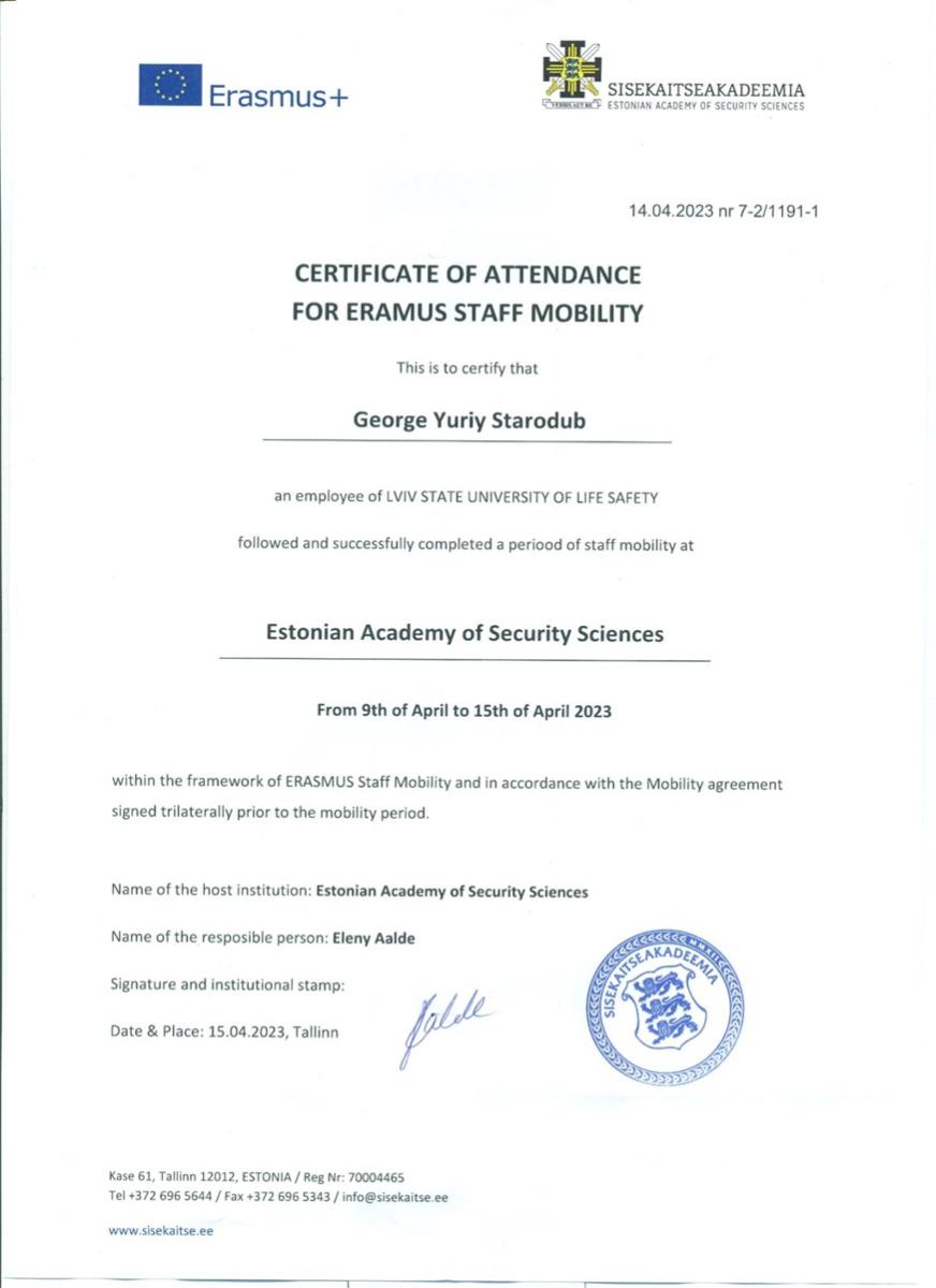 2018 р. – НУ “Львівська політехніка”. Поглиблення практичного досвіду викладання та ознайомлення з навчально-методичним забезпеченням дисциплін кафедри менеджменту і міжнародних зав’язків.