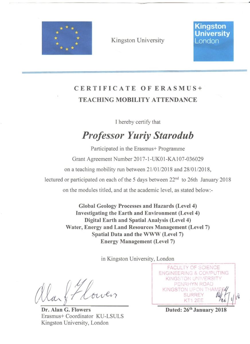 ERASMUS+ 2 ГРАНТИ з університетом KINGSTON, LONDON; проект BRITISH COUNCIL; ERASMUS+ ГРАНТ з вищою школою TALLIN, ESTONIA: