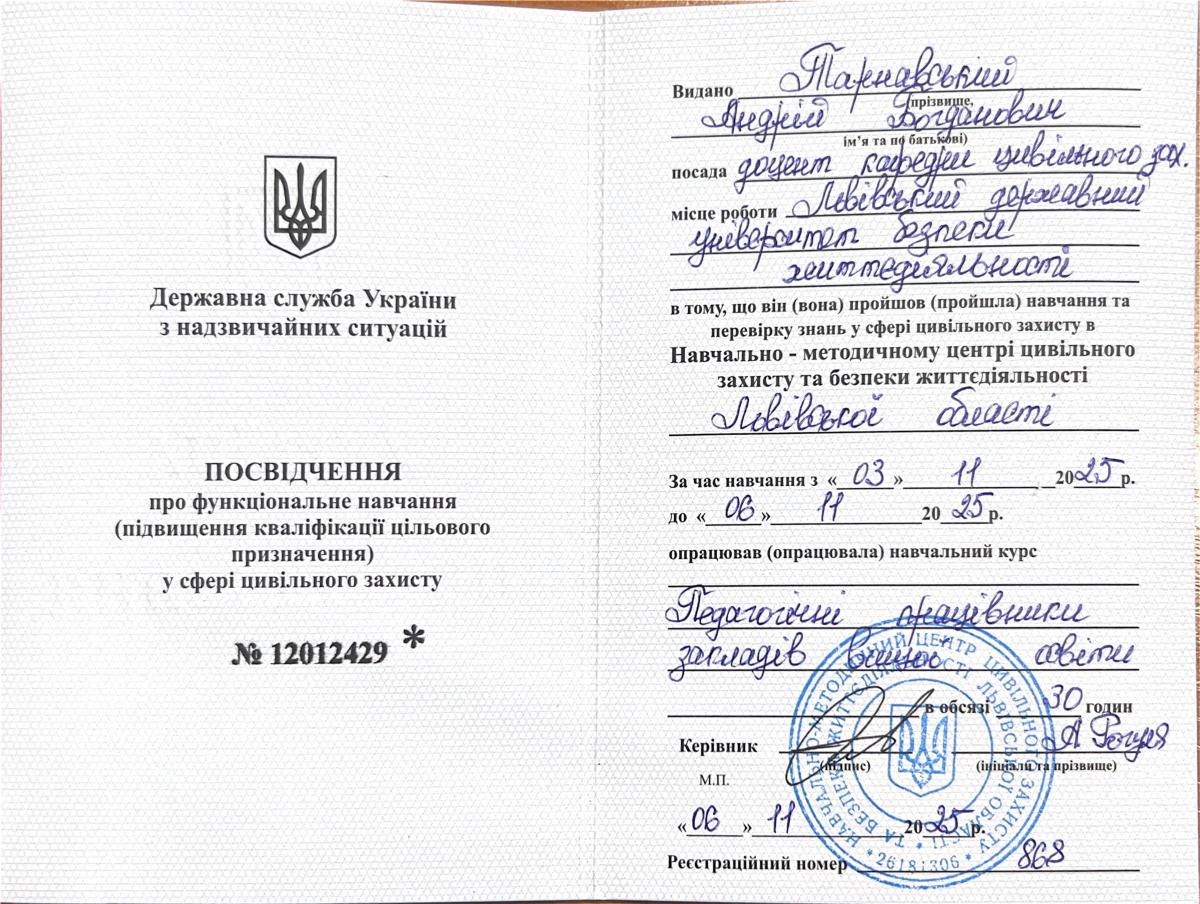· Карабин В.В., Яковчук Р.С., Тарнавський А.Б. Підвищення кваліфікації фахівців із захисту критичної інфраструктури у Львівському державному університеті безпеки життєдіяльності // Збірник матеріалів II Міжнародної науково-практичної конференції “Актуальні питання підготовки фахівців для сектору безпеки і оборони в умовах війни”. – Кропивницький: ДонДУВС, 17 квітня, 2025. – С. 264-268.