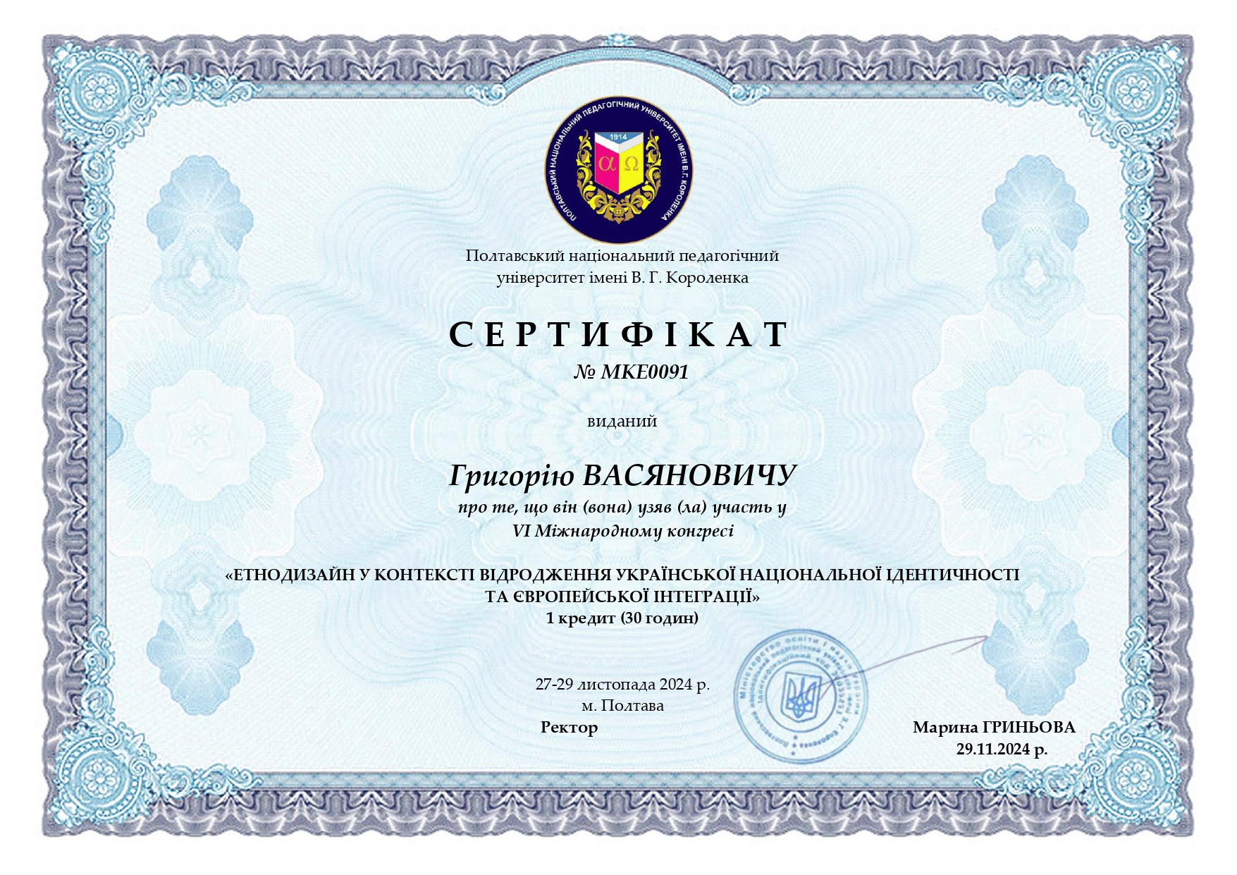 - Vasianovych, H., Budnyk, O., Melnyk, Ya., & Fomin, K. The educator as a subject of the spiritual development of student youth. (Pedagog jako subjekt duchovního rozvoje studentské mládeže). Caritas et veritas. 2023. 13(2) 38-50. https://doi.org/10.32725/cetv.2023.020 Scopus.