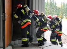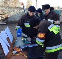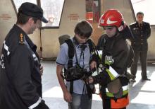 Курсанти відпрацьовують елементи проведення рятувальних робіт та гасіння пожеж у задимлених приміщеннях. Заняття проходять на базі психолого-тренувального полігону навчальної пожежно-рятувальної частини Університету.