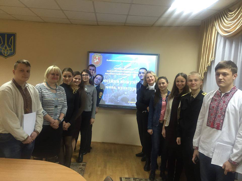 4 листопада 2016 року члени Наукового товариства, що діє при кафедрі українознавства нашого Університету, узяли участь у Міжвузівському курсантсько-студентському науково-практичному семінарі «ПРОФЕСІЙНА КОМУНІКАЦІЯ: МОВА, КУЛЬТУРА, ПРАВО», який відбувався на базі Львівського державного університету внутрішніх справ. Учасниками семінару були представники ЛДУВС, ЛДУ імені Івана Франка, НУ «Львівська політехніка», Львівського університету банківської справи, Прикарпатського національного університету імені Василя Стефаника.