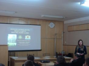 Під час проведення зборів з доповіддю виступила викладач кафедри УІБ Марія Мандрона на тему «Вимоги законодавства щодо захисту персональних даних в інформаційно-телекомунікаційній системі. Шляхи реалізації захисту персональних даних в інформаційно-телекомунікаційній системі».