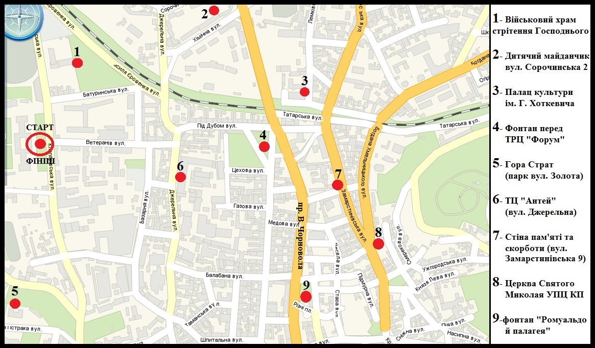 Кожна команда з 5-ти осіб згідно заданого маршруту повинна була пройти шлях, який складався із 9 пунктів міста Львова, початковим і кінцевим з яких був наш навчальний заклад. Прямуючи по маршруту, учасники повинні були правильно відповісти на якнайбільшу кількість поставлених запитань та якнайшвидше прибути до фінального пункту, при цьому не порушуючи правил дорожнього руху та правил поведінки в громадських місцях.