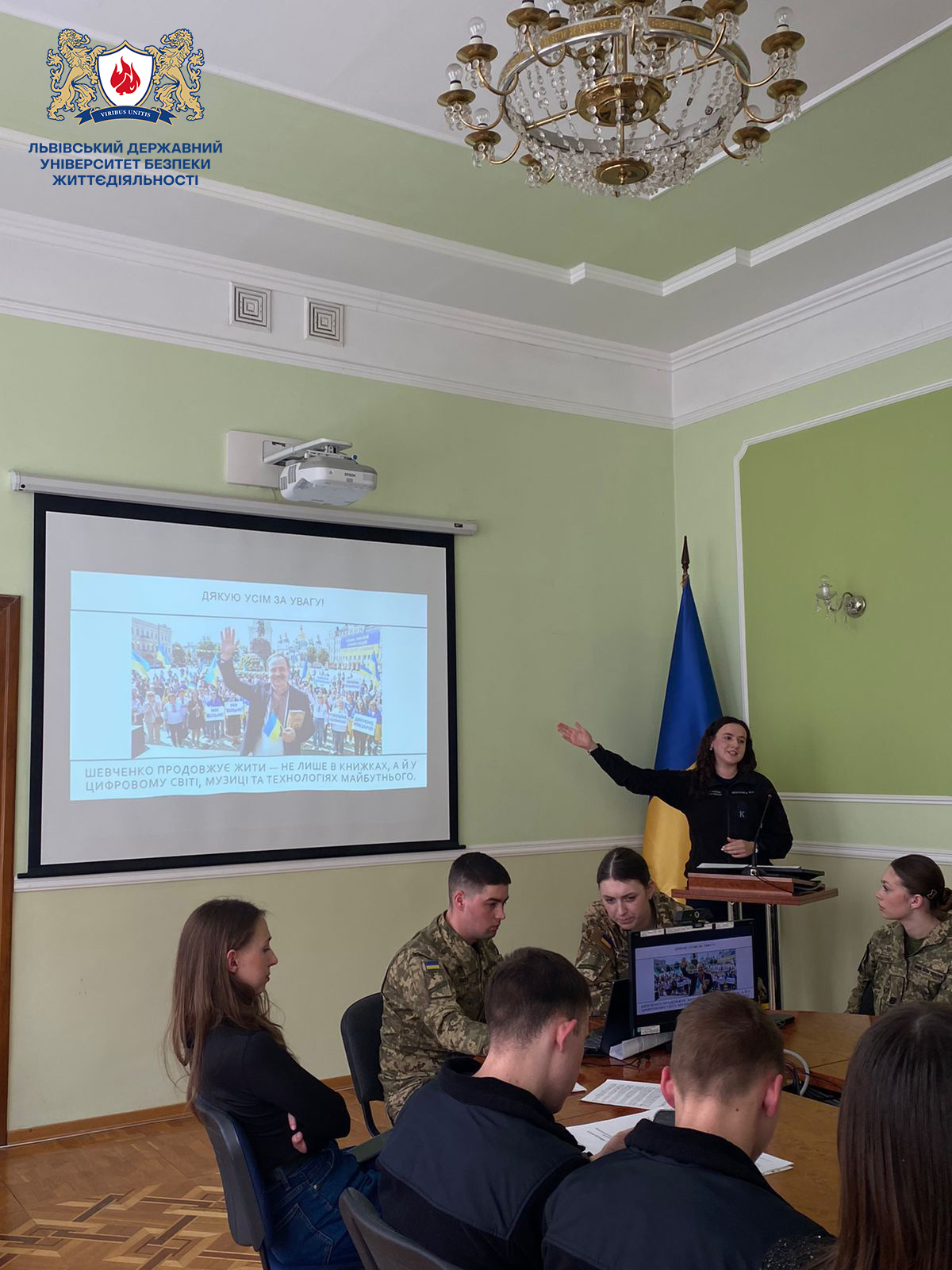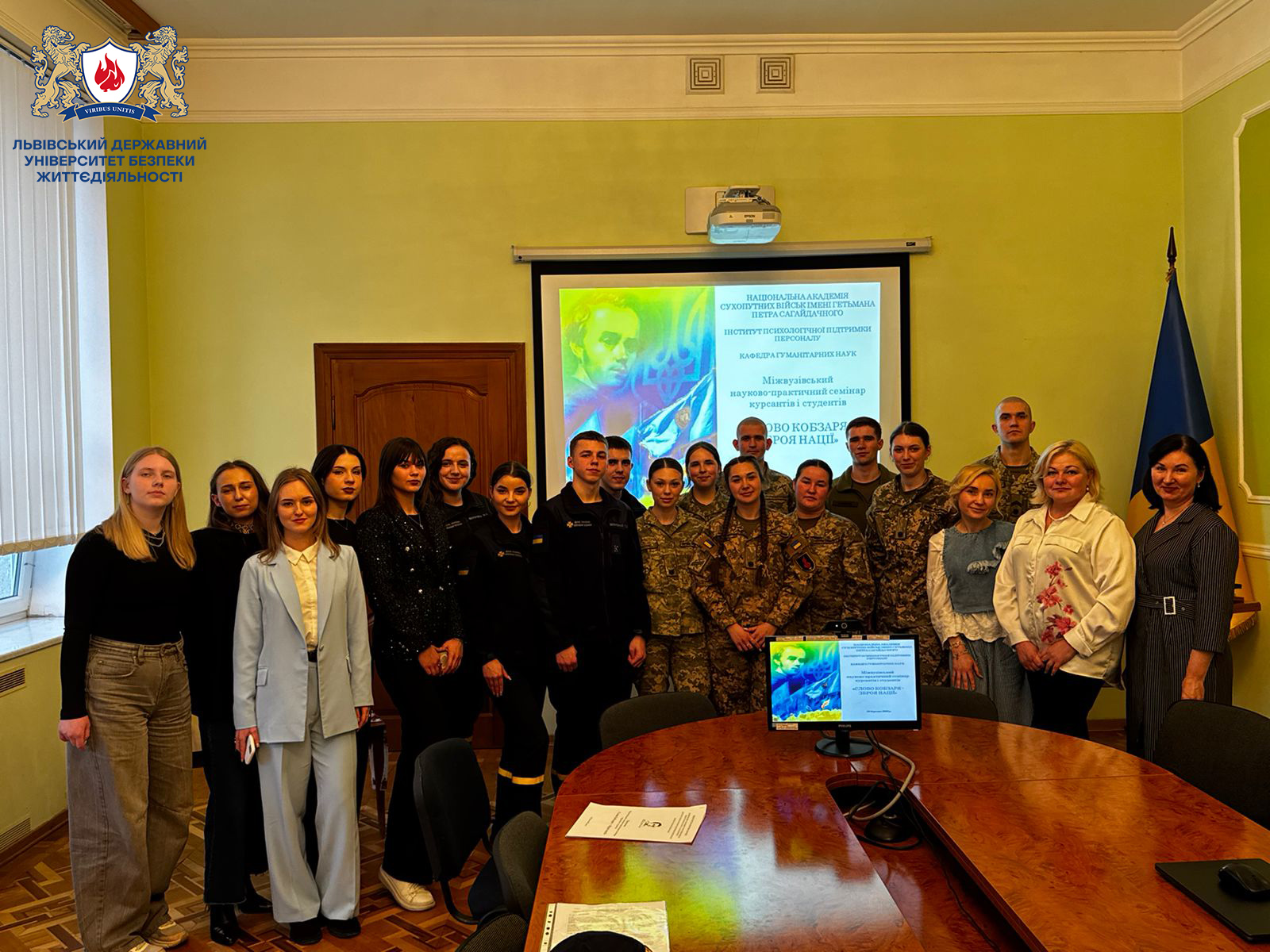 26 березня курсанти та студенти ЛДУБЖД Каріна Дида, Марʼяна Беззубка, Андрій Бабич, Гліб Зелінський, Юлія Чечільницька, Оксана Ткачик та викладачі кафедри українознавства та міжкультурної комунікації долучились до міжвузівського науково-практичного семінару "Слово Кобзаря - зброя нації" в Національній академії сухопутних військ імені гетьмана Петра Сагайдачного. Тарас Шевченко оявлювався в наукових розвідках сучасної молоді.