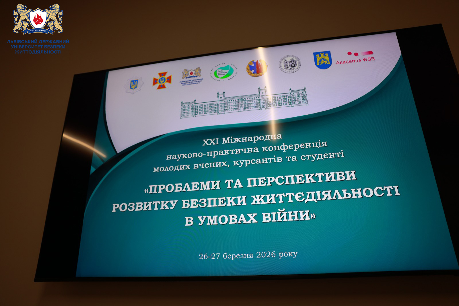 26–27 березня 2026 року у Львівський державний університет безпеки життєдіяльності відбулася ХХІ Міжнародна науково-практична конференція молодих вчених, курсантів та студентів «Проблеми та перспективи розвитку безпеки життєдіяльності в умовах війни».