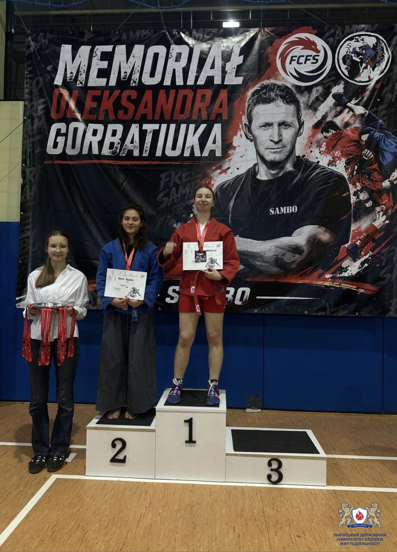 18 квітня 2026 року в місті Краків відбувся міжнародний турнір із боротьби самбо Free Sambo Tournament, Oleksandr Gorbatiuk Memorial 2026, на якому студентки першого курсу Навчально-наукового інституту цивільного захисту Львівського державного університету безпеки життєдіяльності гідно представили свій заклад.