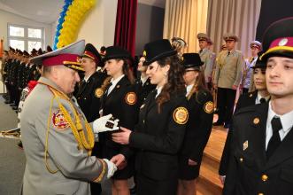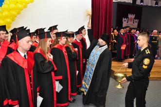Ректор Університету вручив випускникам погони лейтенанта, а під час академічної частини випускники отримали дипломи магістрів. Михайло Козяр зазначив, що впреше в історії університету молодь отримує дипломи та додатки міжнародного взірця, а наступні випускники один із семестрів будуть навчатися за програмою «Подвійний диплом» у Варшаві.