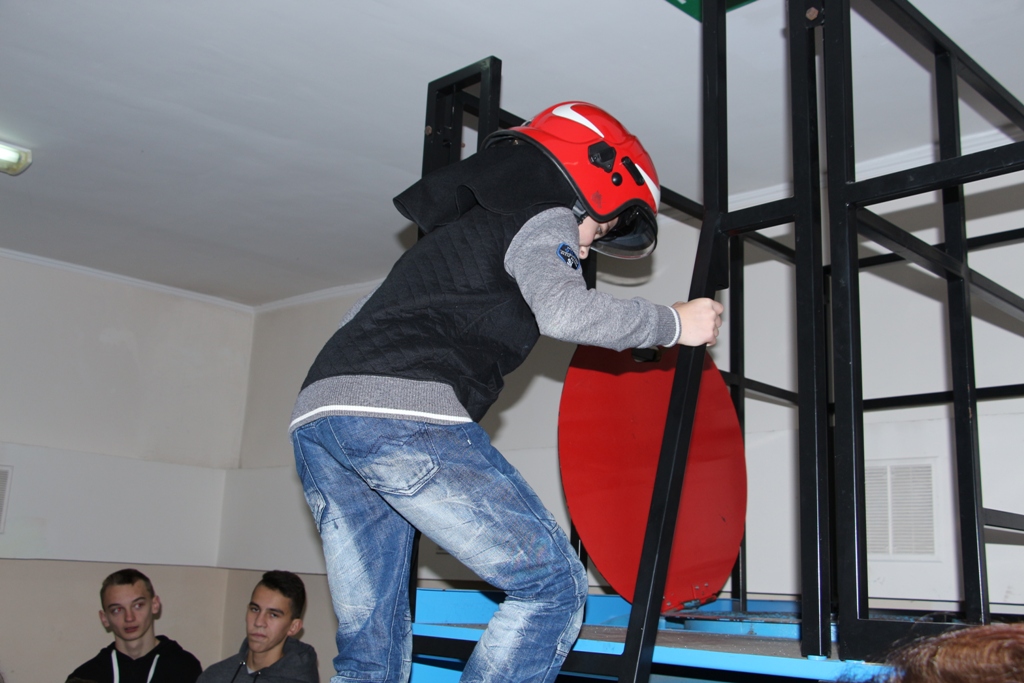 Особливе захоплення у молоді викликало знайомство із базою психолого-тренувального полігону, де вони отримали можливість пройти своєрідне випробування пройшовши смугу перешкод. При цьому ситуація, яка відтворюється на смузі за допомогою штучного диму, у термічній зоні, світловими та звуковими ефектами, імітує роботу рятувальника в умовах реальної пожежі чи аварії. Таким чином, відвідувачі на власному прикладі переконалось, що професія «рятувальника» вимагає професійної підготовки, витримки та спеціальних фахових умінь і навиків, а також є вкрай необхідними задля безпеки життєдіяльності.