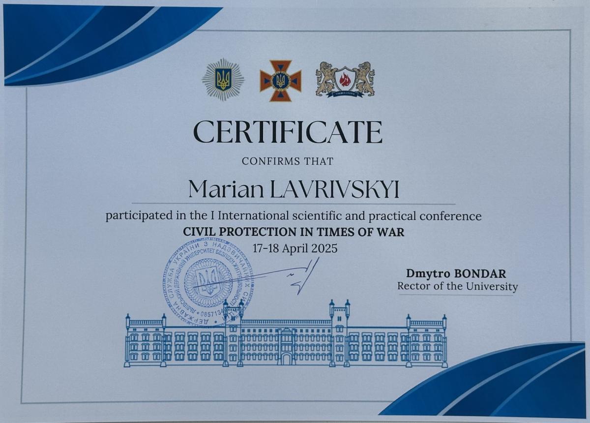 | Спеціальність | 1) Організація та техніка протипожежного захисту 2) Пожежна безпека 3) Цивільний захист |