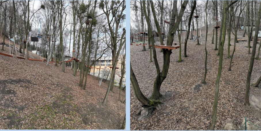 Альпін-парк - це система дерев'яних платформ, взаємопов'язаних атракцій: стенд скелелазіння, підвісні лінії перешкод, навісна та круто похила переправи, канатні дороги, сходи, містки. Закріплені ці елементи на висоті 5-20 метрів над землею.