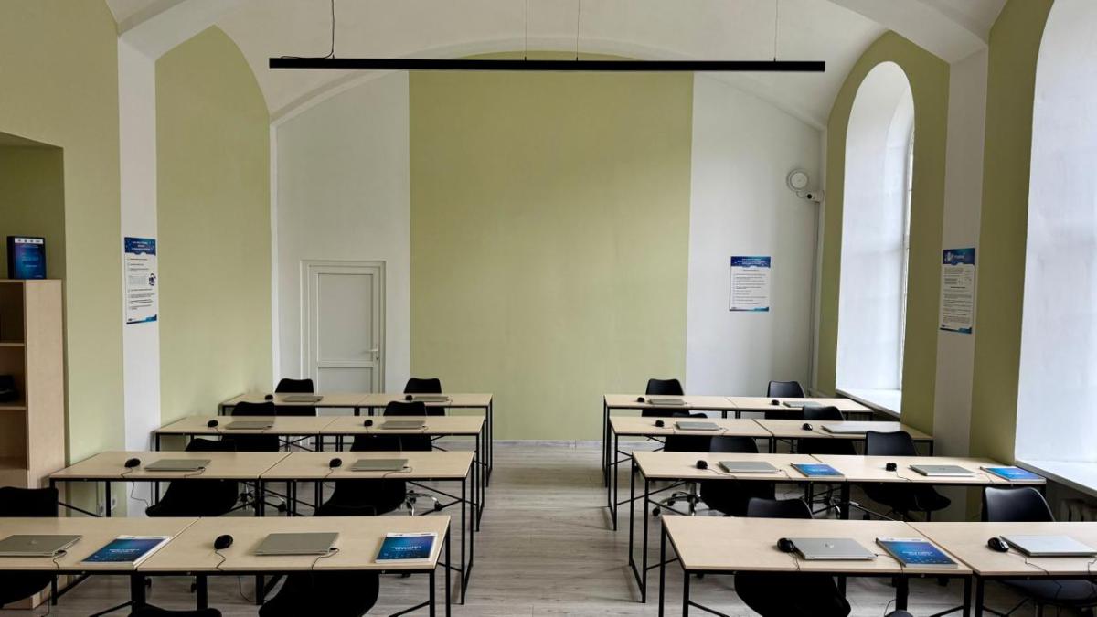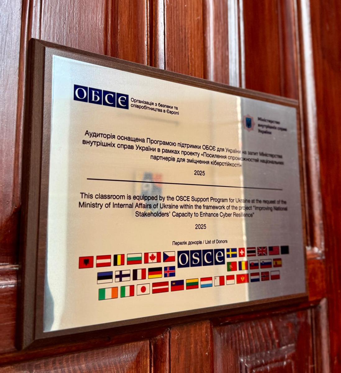 Вона облаштована 30 комп’ютеризованими робочими місцями, інтерактивними засобами навчання та методичним забезпеченням у межах проєкту «Посилення спроможностей національних партнерів для зміцнення кіберстійкості», який реалізується Програмою підтримки ОБСЄ в Україні у сфері «Безпека людини». Авдиторія призначена для формування у здобувачів освіти практичних навичок із забезпечення кібергігієни, підвищення цифрової обізнаності та захисту інформації. Тут проводяться заняття з профільних дисциплін, тренінги та практикуми, що поєднують теоретичну підготовку з відпрацюванням сценаріїв реагування на кіберінциденти.