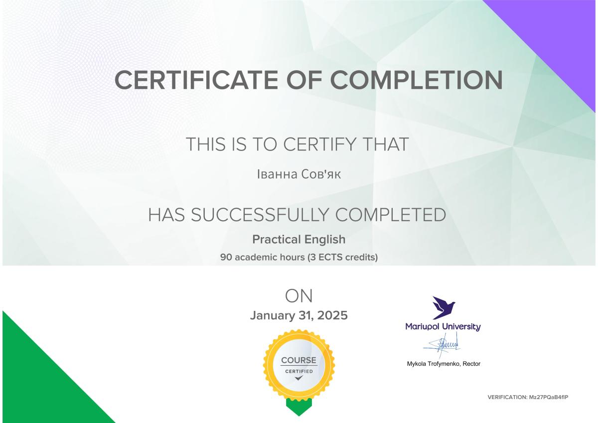 Посада: старший викладач кафедри Вища освіта: за спеціальністю «Математика» (2020), кваліфікація – викладач |