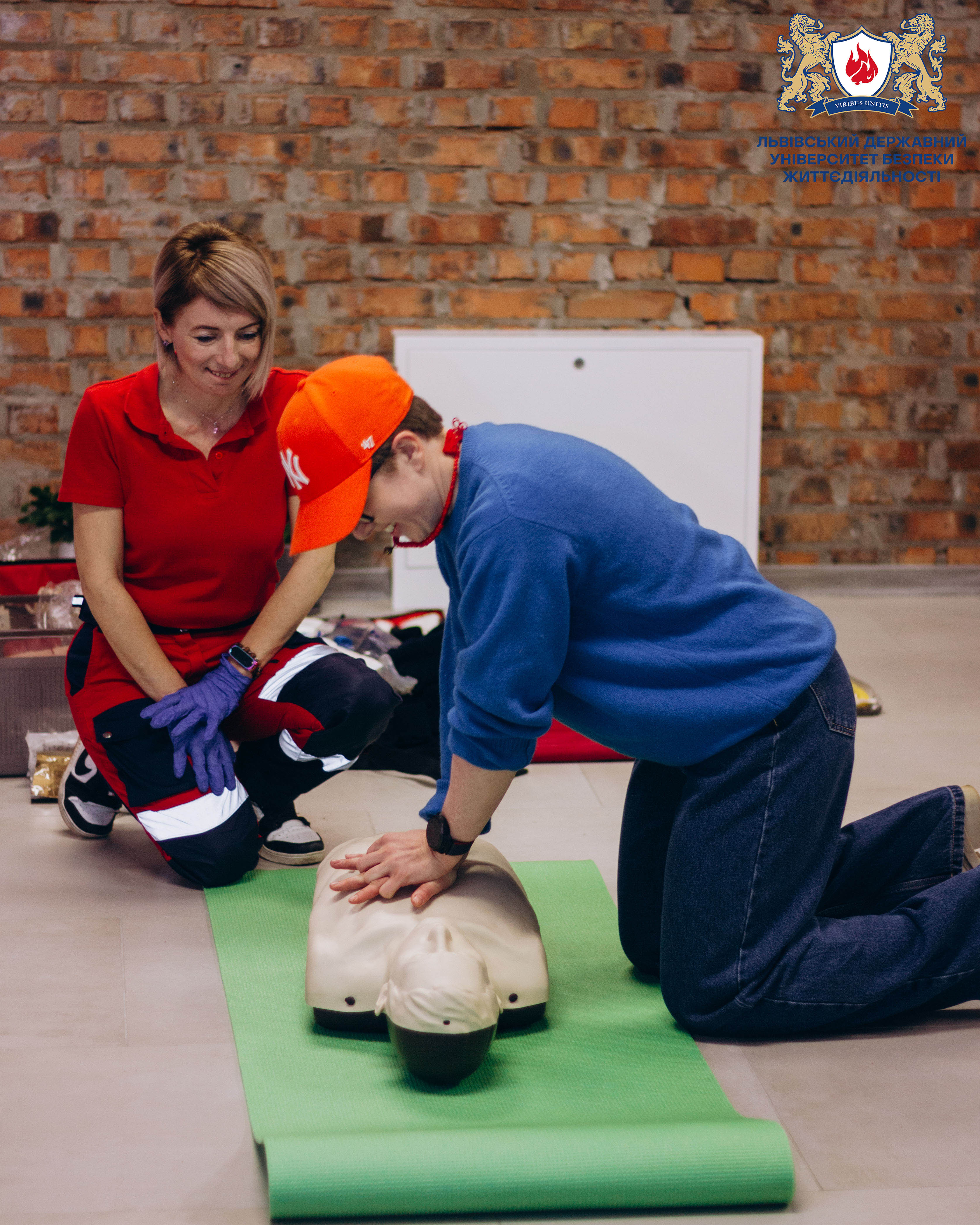 Здобувачі вищої освіти 4 курсу спеціальності 053 Психологія розповіли, як правильно надавати першу психологічну допомогу при страху, плачу, апатії, галюцинаціях, гострих стресових станах, агресії та тривожності. Цікавою для учасників була практична частина від викладача Університету з першої домедичної допомоги, а саме: зупинка критичних кровотеч, серцево-легенева реанімація, а також надання першої допомоги при опіках, переломах та інших ураженнях. Учасникам бойових дій та працівникам центру було особливо цікаво почути інформацію, котра може врятувати життя, спробувавши відтворити почуте на манекенах.
