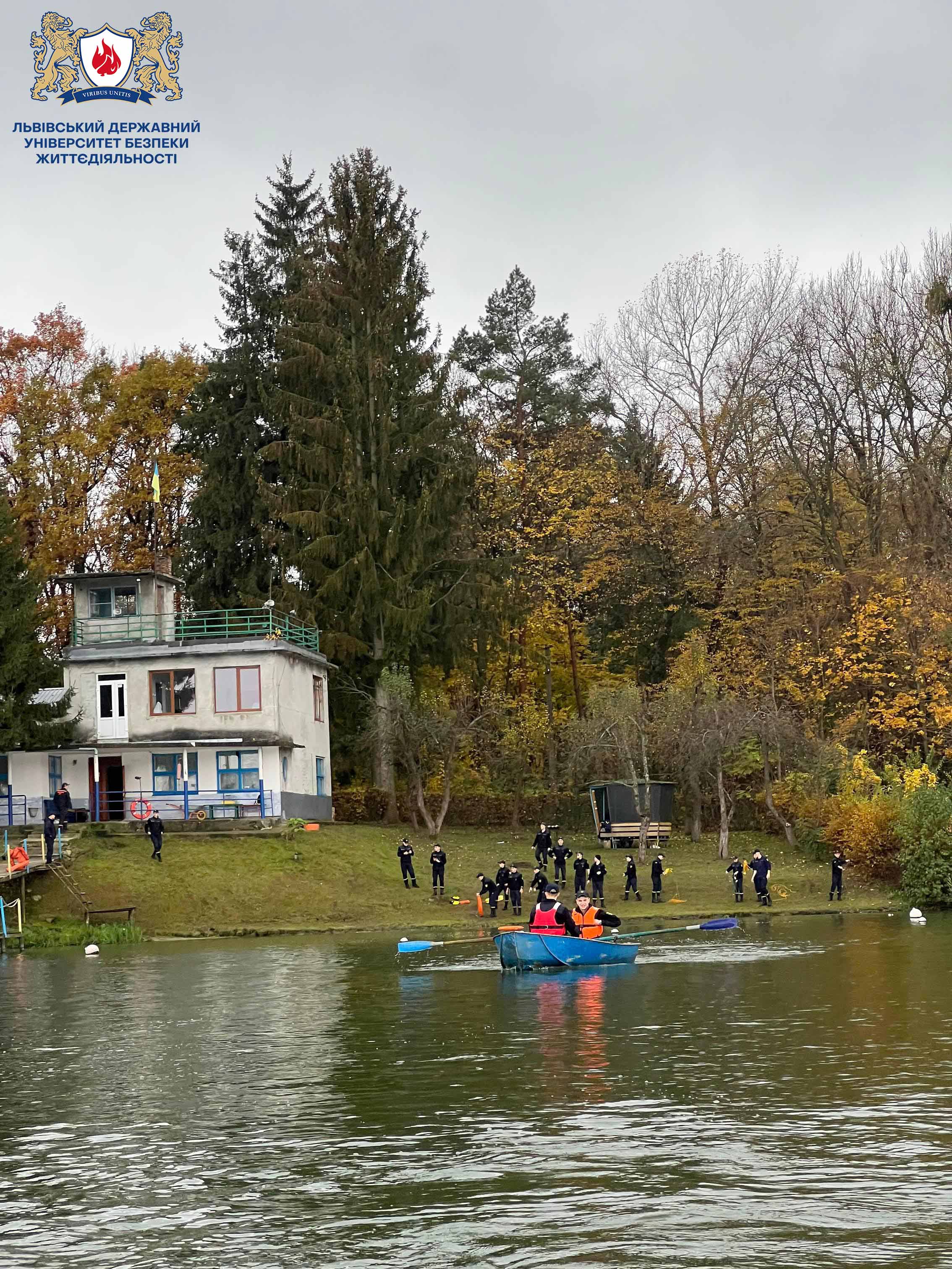 Під час проведення заняття здобувачі відпрацювали практичні навички з подачі рятувальних засобів, техніки рятування потерпілих на воді з використанням рятувальних засобів, веслування на дистанцію 1000 метрів, рятування потерпілого з використанням плавзасобу. Також проведено відпрацювання пошуку людей під водою з використанням водолазного спорядження.