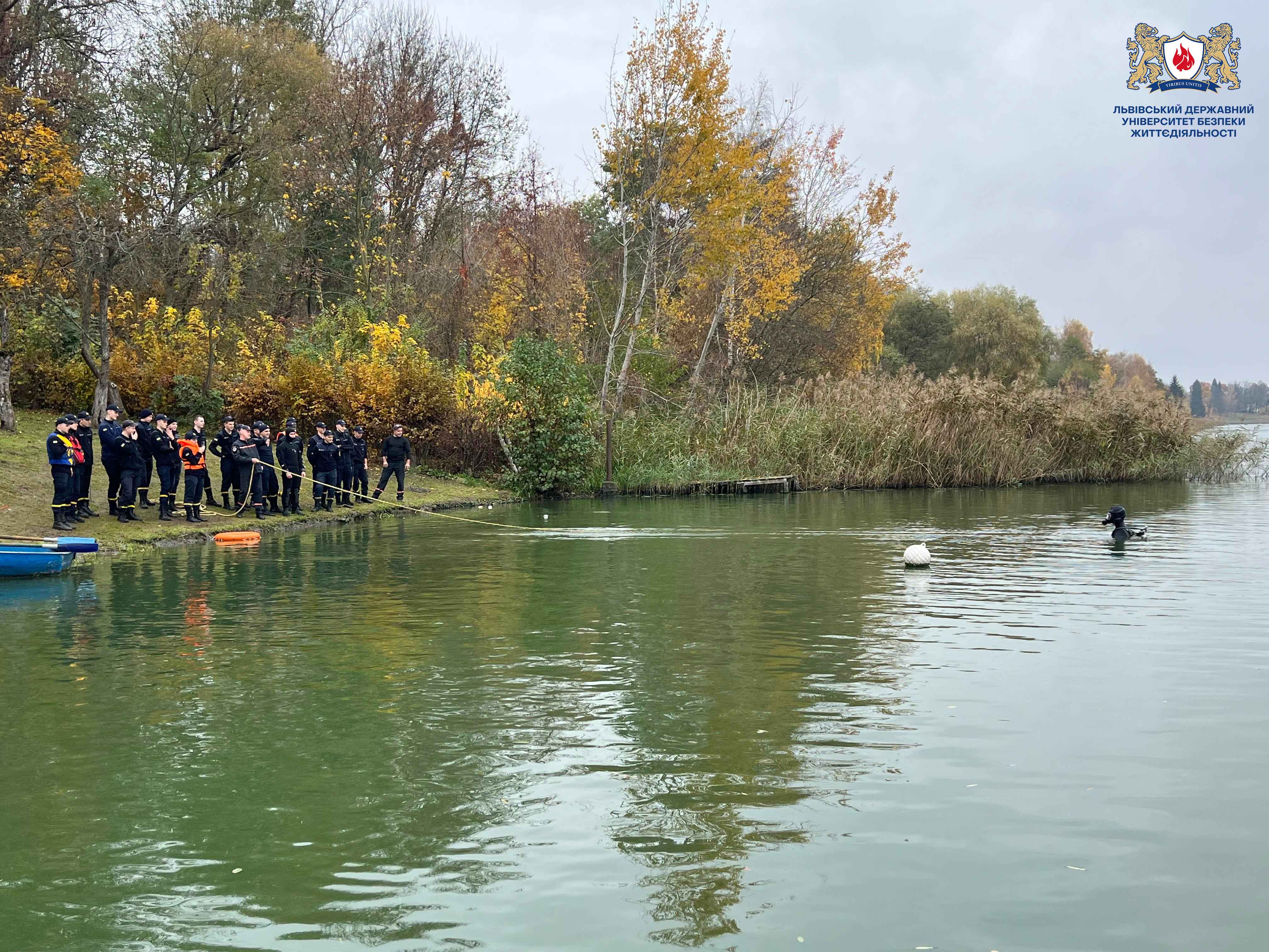 Працівники Центральної рятувально-водолазної служби у Львівській області разом із начальником кафедри цивільного захисту Василем Лоїком та доцентом кафедри Олександром Синельніковим провели практичне заняття зі здобувачами вищої освіти факультету цивільного захисту з дисципліни «Організація ліквідації надзвичайних ситуацій та пожеж». Тема заняття - «Організація ліквідації надзвичайних ситуацій на водних об’єктах».
