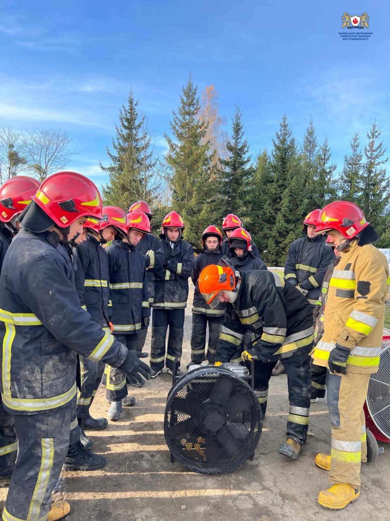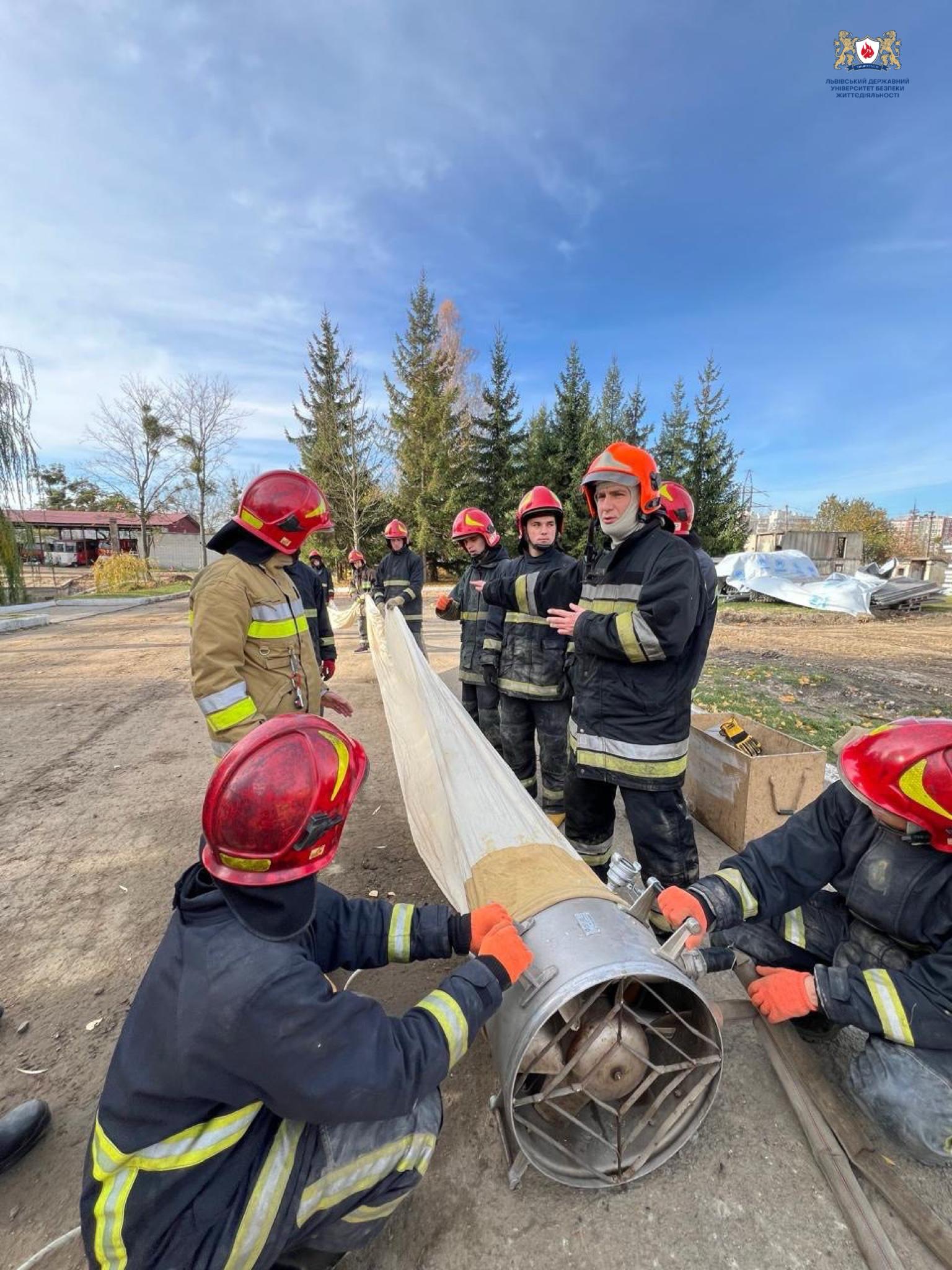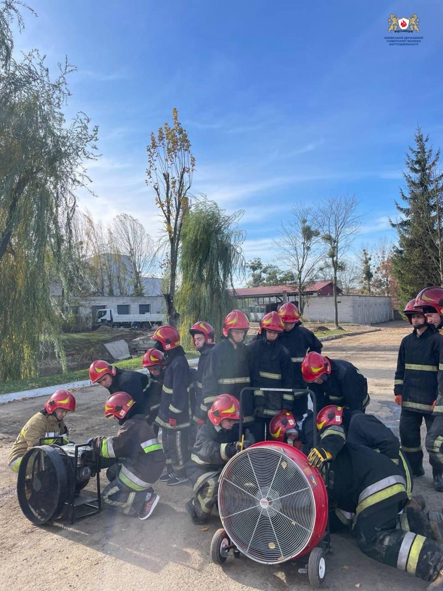 Здобувачі вищої освіти 2-го курсу факультету пожежної та техногенної безпеки Львівського державного університету безпеки життєдіяльності вдосконалювали практичні навички на базі навчально-тренувального полігону Університету. Під час заняття курсанти та студенти освоюють практичні навички щодо застосування димососів, нагнітачів повітря та роботи ланки ГДЗС в непридатному для дихання середовищі з проведенням гідравлічної вентиляції приміщень.