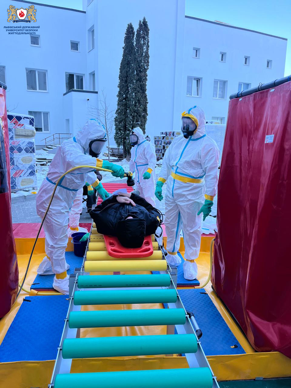 Під час тренінгу відпрацьовували курс CBRN (РХБЗ), в основі якого закладено вимоги до деконтамінації постраждалих ще до прибуття в медичний заклад. Наступними етапами були процеси надання допомоги в умовах масового прибуття постраждалих.