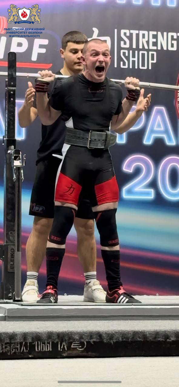 Курсант 2-го курсу факультету пожежної та техногенної безпеки Львівського державного університету безпеки життєдіяльності Єгор Міщаненко показав високий результат на Чемпіонаті України з класичного пауерліфтингу серед студентів закладів вищої освіти, що відбувся у місті Коломия. За підсумками змагань у своїй ваговій категорії спортсмен посів ІІІ місце та виконав норматив Майстра спорту України, піднявши сумарну вагу 575 кг.