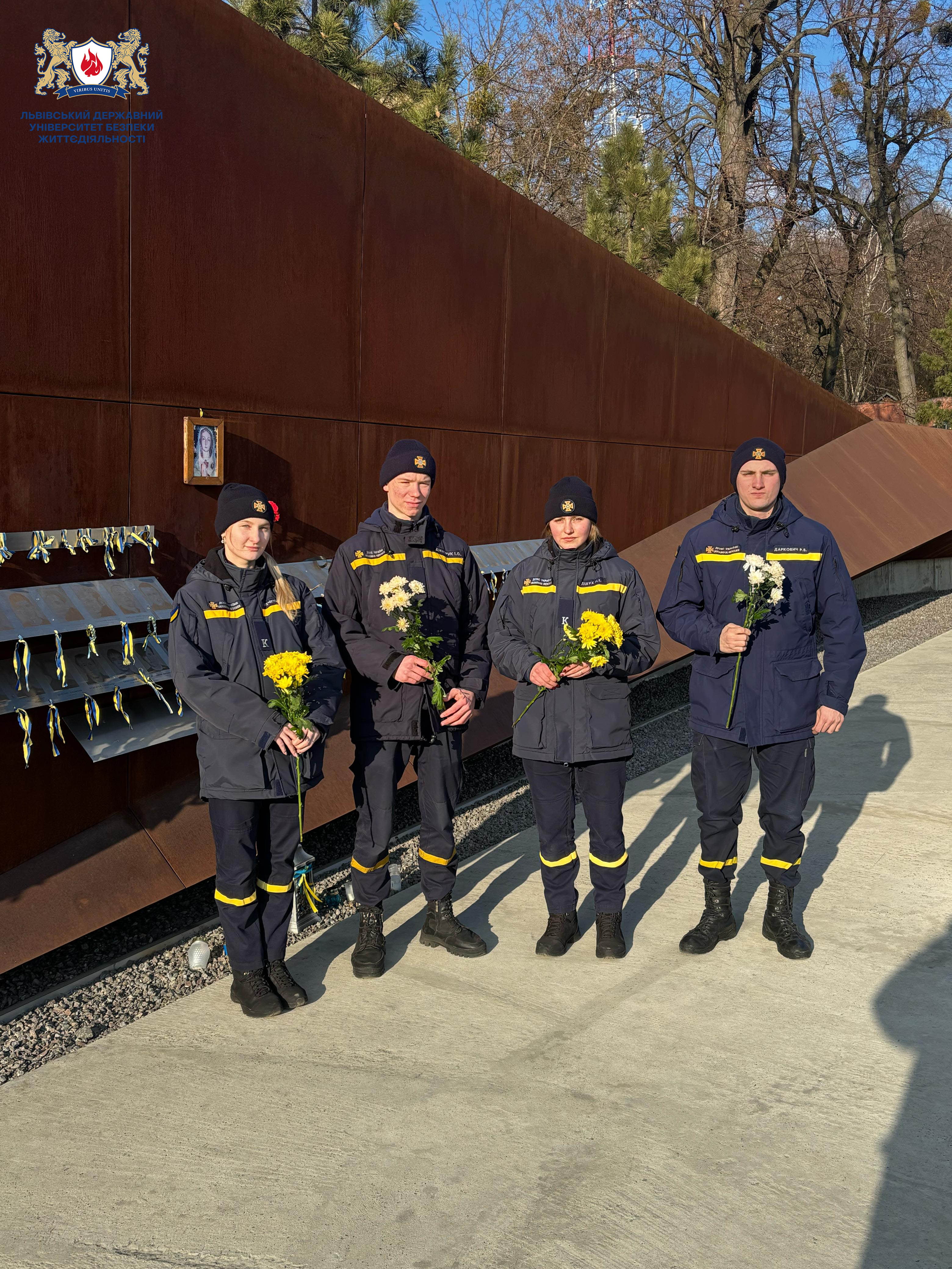 У цей день здобувачі вищої освіти факультету пожежної та техногенної безпеки Львівського державного університету безпеки життєдіяльності разом із представниками відділу соціально-гуманітарної роботи вшанували пам’ять Героїв, поклавши квіти до Меморіалу Героїв Небесної Сотні у Львові.