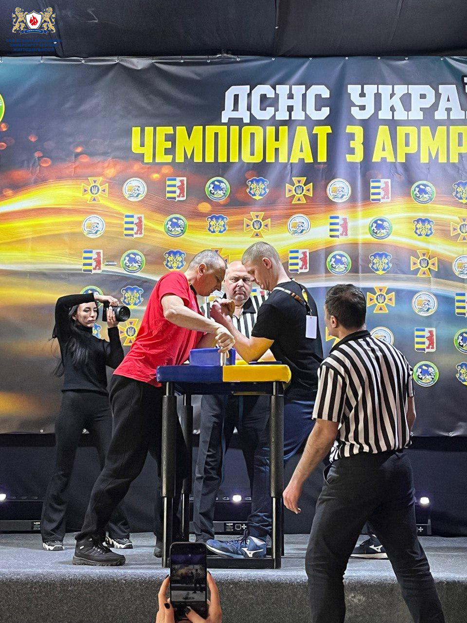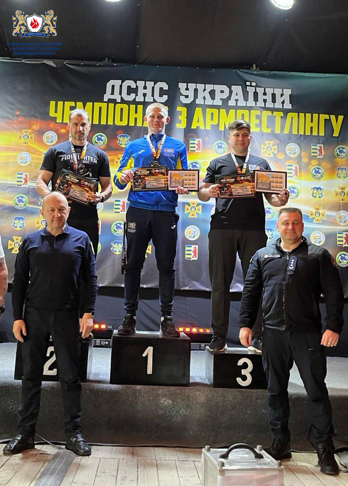 У боротьбі на ліву руку відзначився курсант 2 курсу Факультету пожежної та техногенної безпеки Кушнір Павло, виборовши 2 місце у категорії до 100 кг. Наступного дня у змаганнях на праву руку він здобув золото, ставши чемпіоном у своїй ваговій категорії.