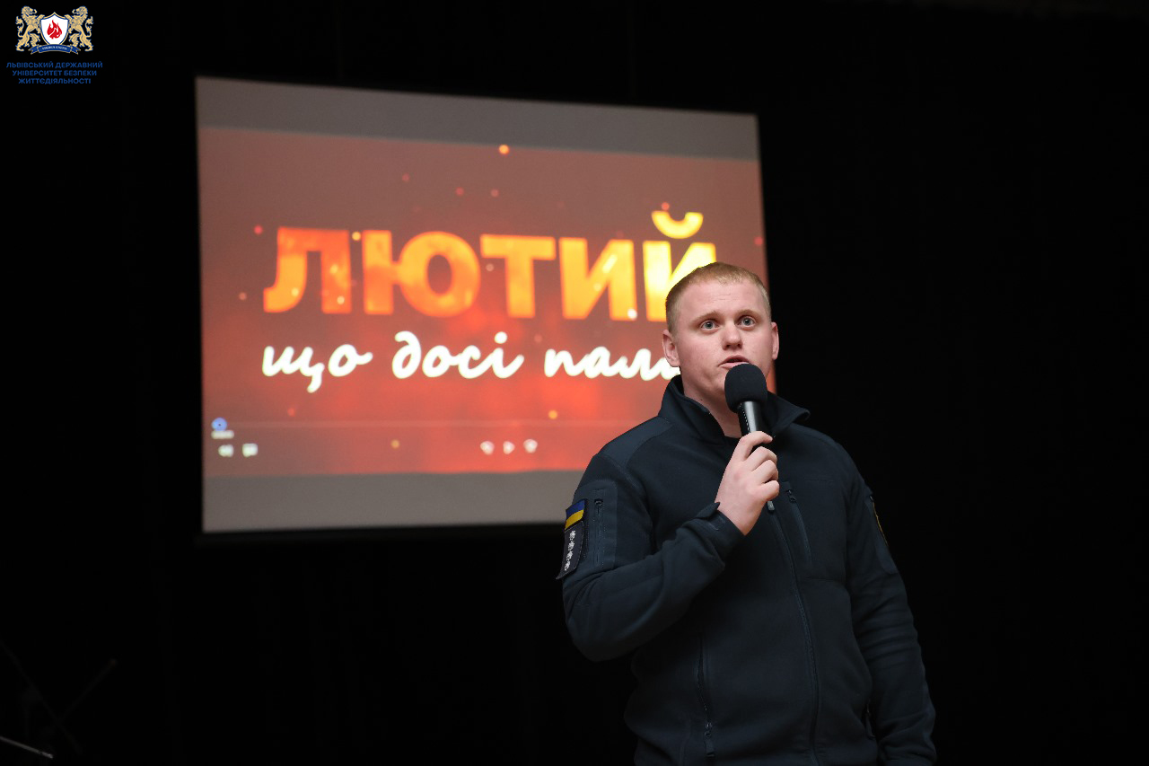 Сьогодні, з нагоди третьої річниці повномасштабного вторгнення російських військ в Україну, у Центрі культури і мистецтв Львівського державного університету безпеки життєдіяльності відбулася премʼєра документального фільму «Лютий, що досі палає».