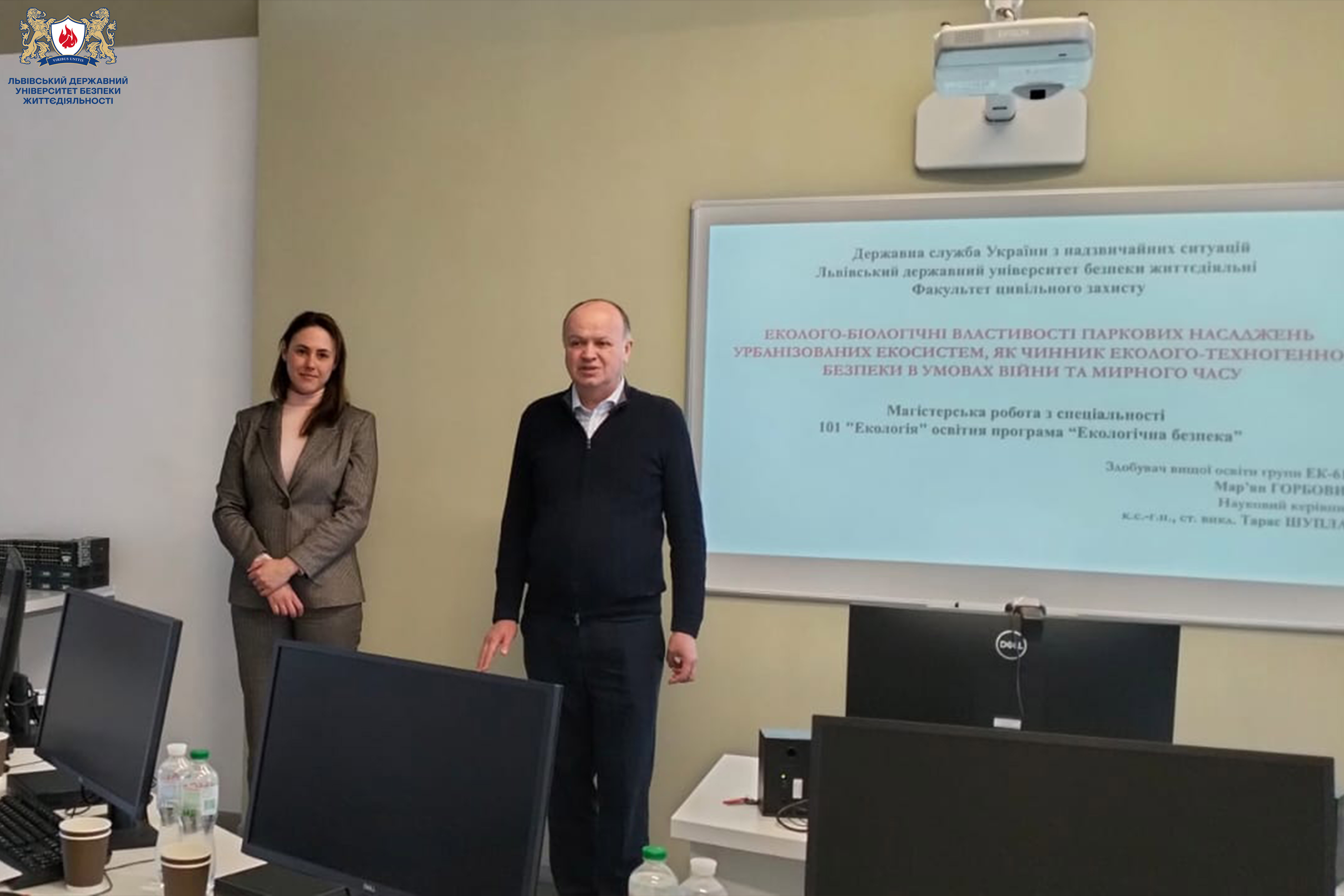 Здобувачі навчальних груп ЕК-61м і ЕК-61мз представили перед державною екзаменаційною комісією, широке коло актуальних для сьогодення тем. Головою державної екзаменаційної комісії була Микітчак Г.С., в.о. начальника управління екології та природних ресурсів, заступник начальника управління - начальник відділу захисту довкілля управління екології та природних ресурсів департаменту природних ресурсів та будівництва Львівської міської ради.