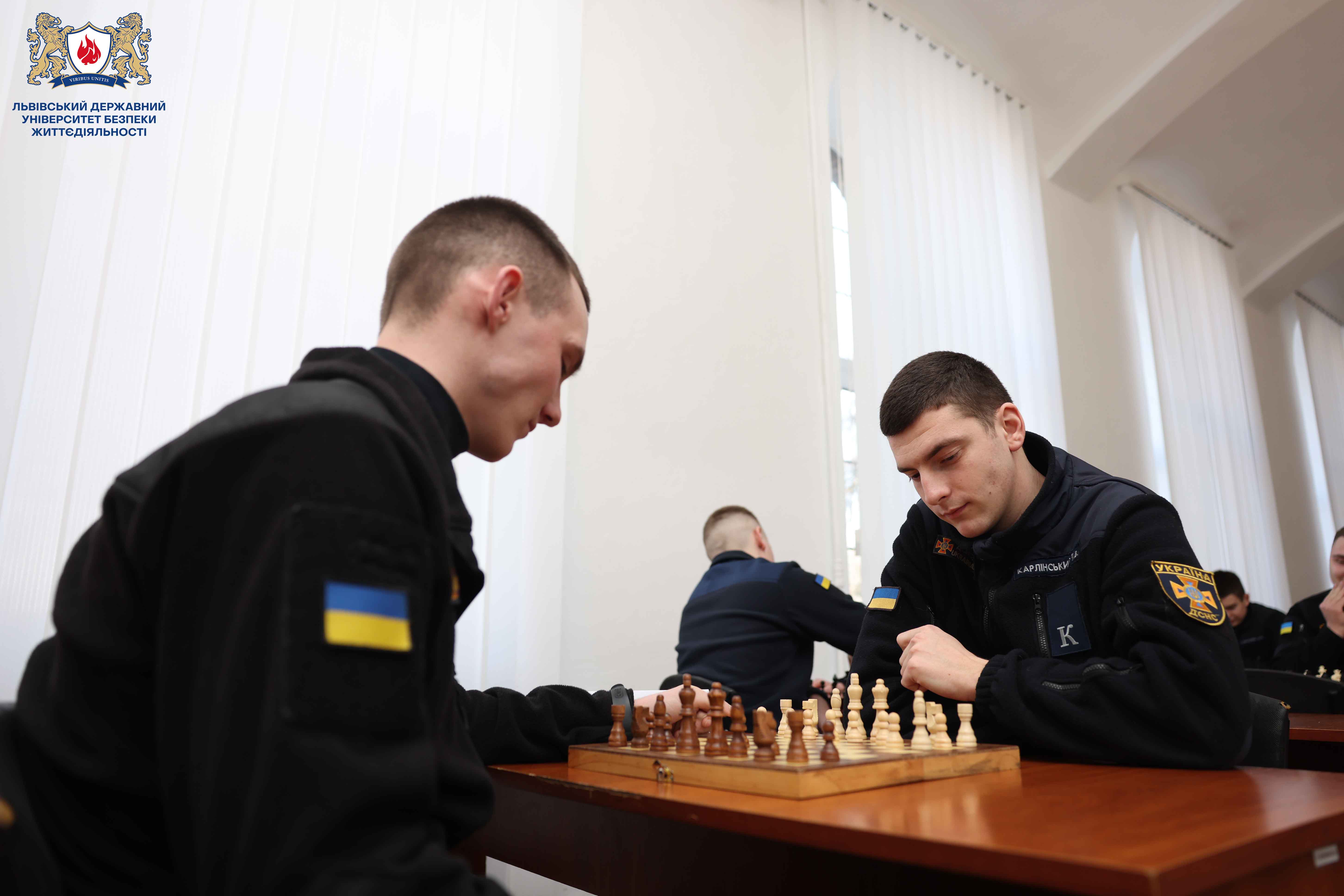У Львівському державному університеті безпеки життєдіяльності розпочалися змагання з шахів серед навчально-стройових підрозділів в програмі Спартакіади ЛДУБЖД з професійно-прикладних видів спорту 2024-2025 н.р. До участі у змаганнях, які будуть командні та індивідуальні, допущено дев’ять команд. Склад команди складається з двох хлопців та дівчини. Змагання проходять по круговій системі, окремо серед хлопців та дівчат за особисту першість. Командна першість визначається за сумою особистих місць учасників змагань. Бажаємо успіхів учасникам змагань!
