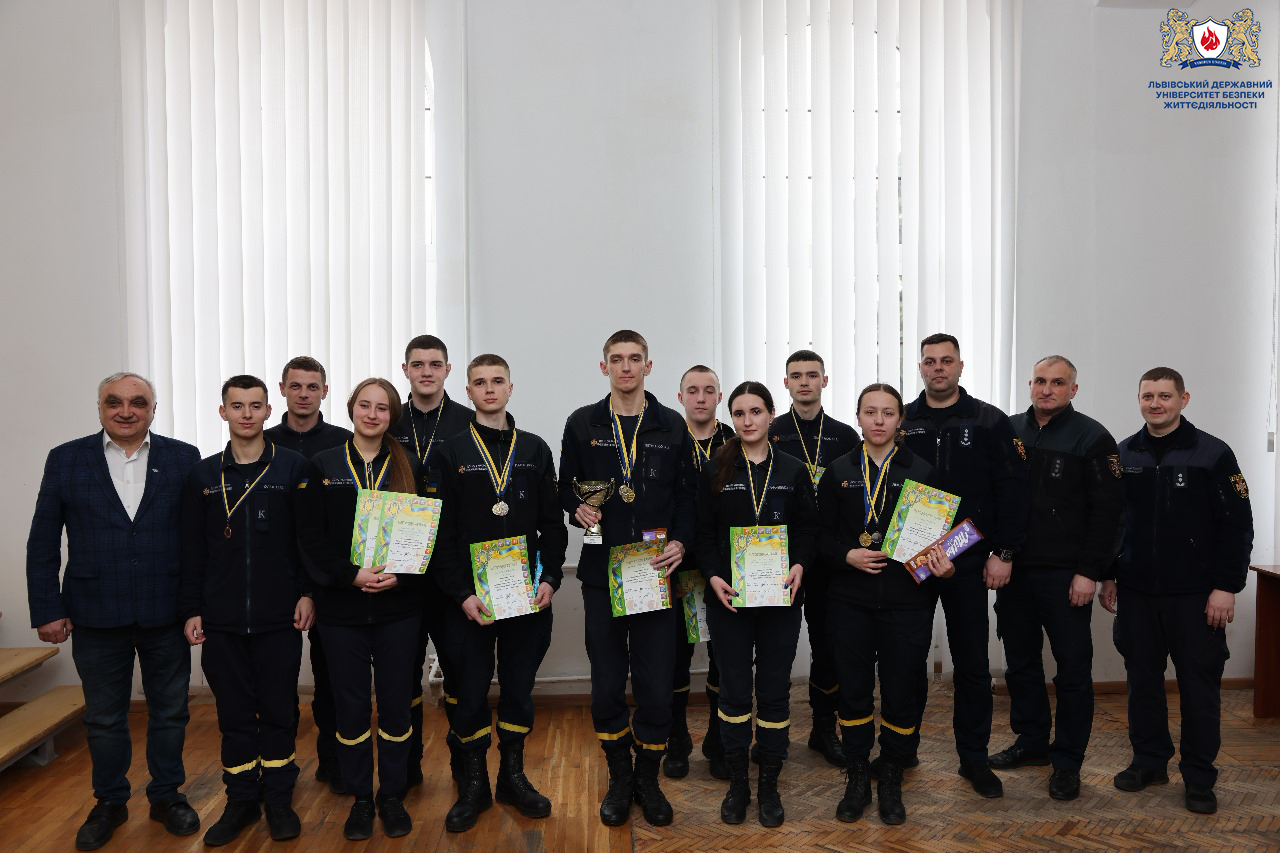 Серед навчально-стройових підрозділів золотим призером змагань стала збірна команда ІІІ-го курсу факультету пожежної та техногенної безпеки у складі: Андріана ПЕТРЕНКА, Єгора ГАПАНЧУКА та Галини Альфавіцької.