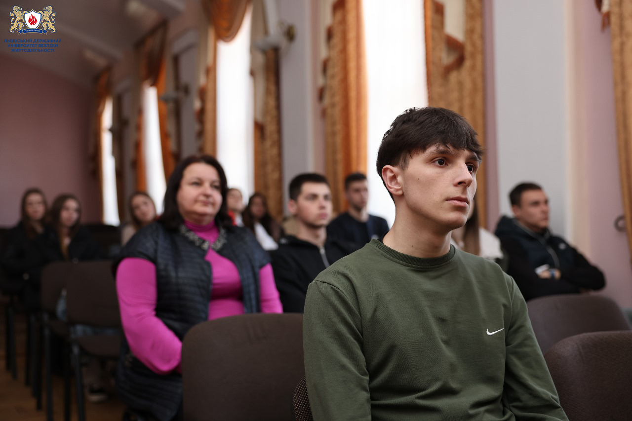 Під час зустрічі начальниця Західного міжрегіонального управління Державної служби з питань праці п. Оксана Єзерська розповіла майбутнім фахівцям з охорони праці про важливу і необхідну роль Держпраці у сьогоденні. Описала основні напрямки діяльності Служби та перспективи працевлаштування. Наголосила, що праця інспекторів Державної служби з питань праці - це не лише відповідальна, а й необхідна, особливо в період воєнного стану, коли кількість викликів з безпеки праці зростає, а з ними та необхідність створення безпечного виробничого середовища та підготовки відповідних фахівців, зокрема і за державним замовленням.