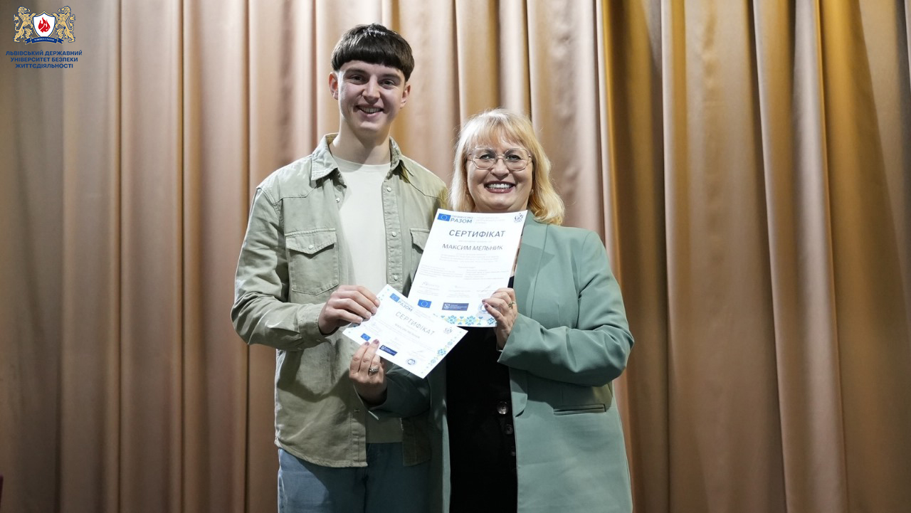 Днями у Львові завершилось навчання талановитої української молоді в офлайн-Єврошколі EU Study Days, у якій взяли участь відомі міжнародні й українські експерти, а також 40 студентів з різних регіонів України. Серед слухачів школи - здобувач факультету цивільного захисту ЛДУБЖД Максим МЕЛЬНИК, який навчається на випускному курсі освітньої програми «Цивільний захист».