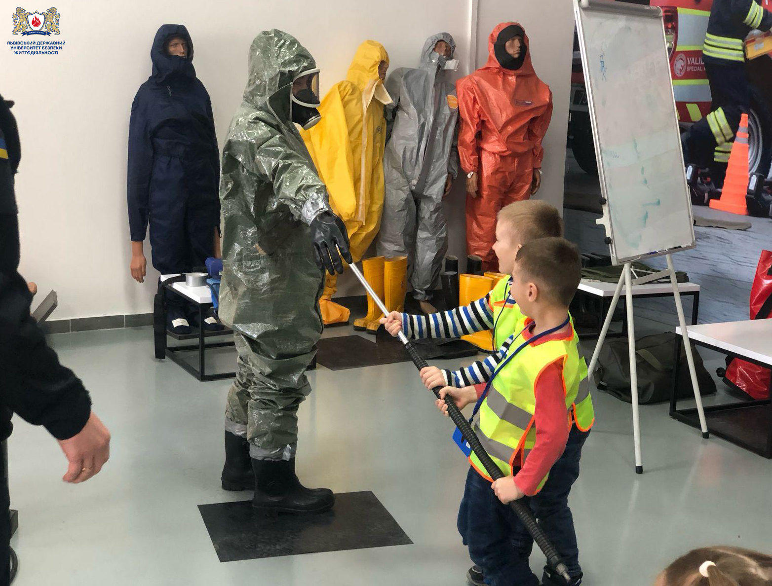 Викладач кафедри Володимир Рихва організував на базі Університету заняття для дітей із закладу дошкільної освіти №8. Малечу у доступній формі ознайомили з правилами поведінки під час радіаційної та хімічної небезпеки, а також основами надання першої домедичної допомоги.