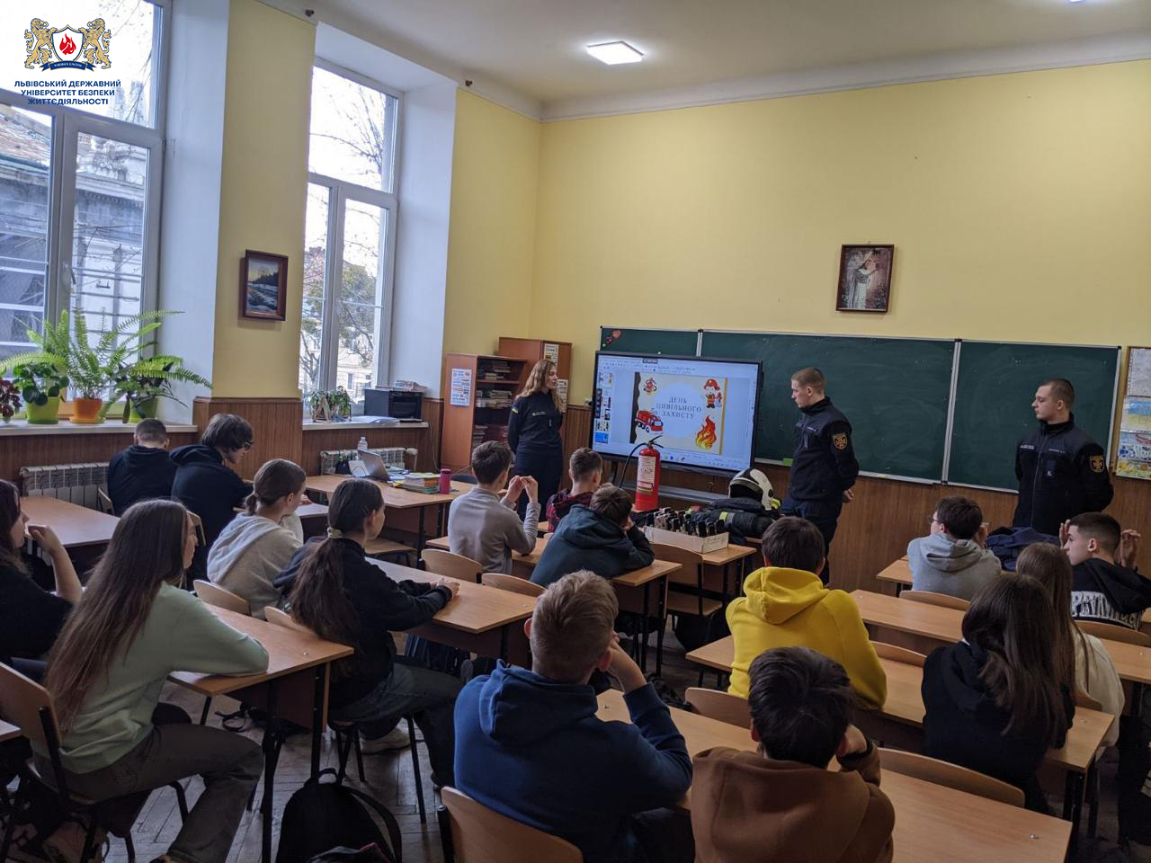 Ад’юнкт кафедри цивільного захисту Вікторія Філіппова спільно з курсантами групи ЦБі-31 — Артемом Карпенком та Андрієм Лисенком — у межах Дня цивільного захисту провели зустрічі з учнями Середньої загальноосвітньої школи І–ІІІ ступенів №20 та Львівської гімназії «Престиж» з поглибленим вивченням іноземних мов. Учасники отримали цінні знання щодо дій у надзвичайних ситуаціях та навчилися застосовувати їх у практичних ситуаціях.