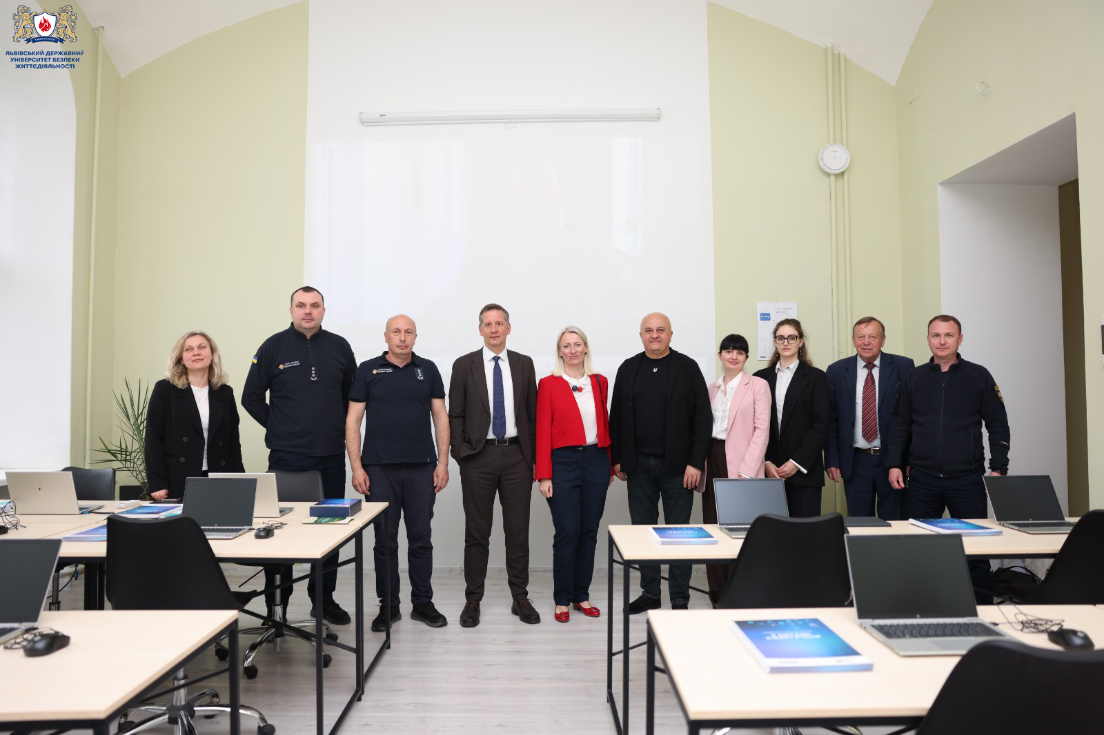 06 травня 2025 року Львівський державний університет безпеки життєдіяльності відвідала делегація Програми підтримки Організації з безпеки та співробітництва в Європі (ОБСЄ) для України з нагоди офіційного відкриття нової навчальної авдиторії кібергігієни.