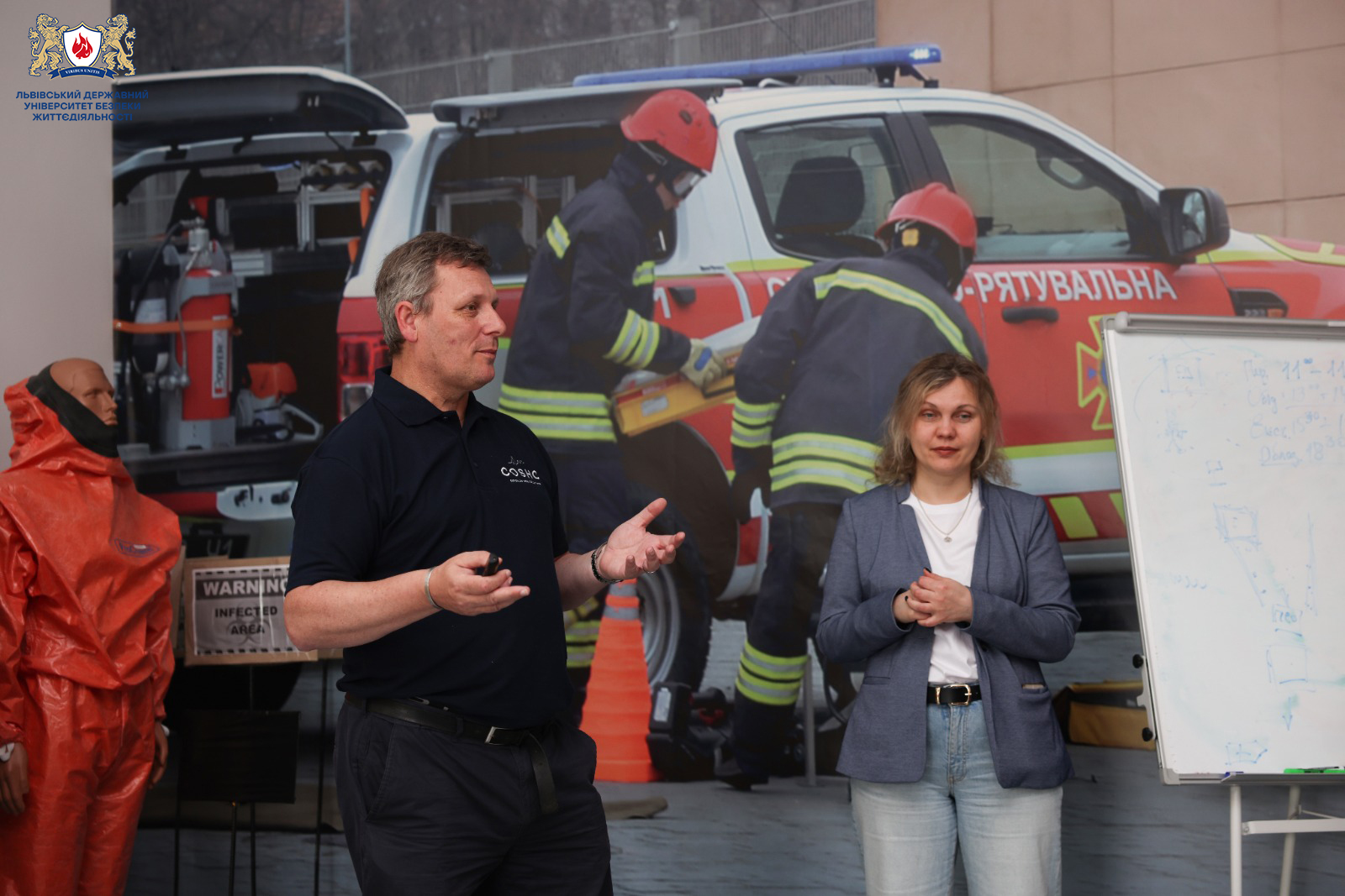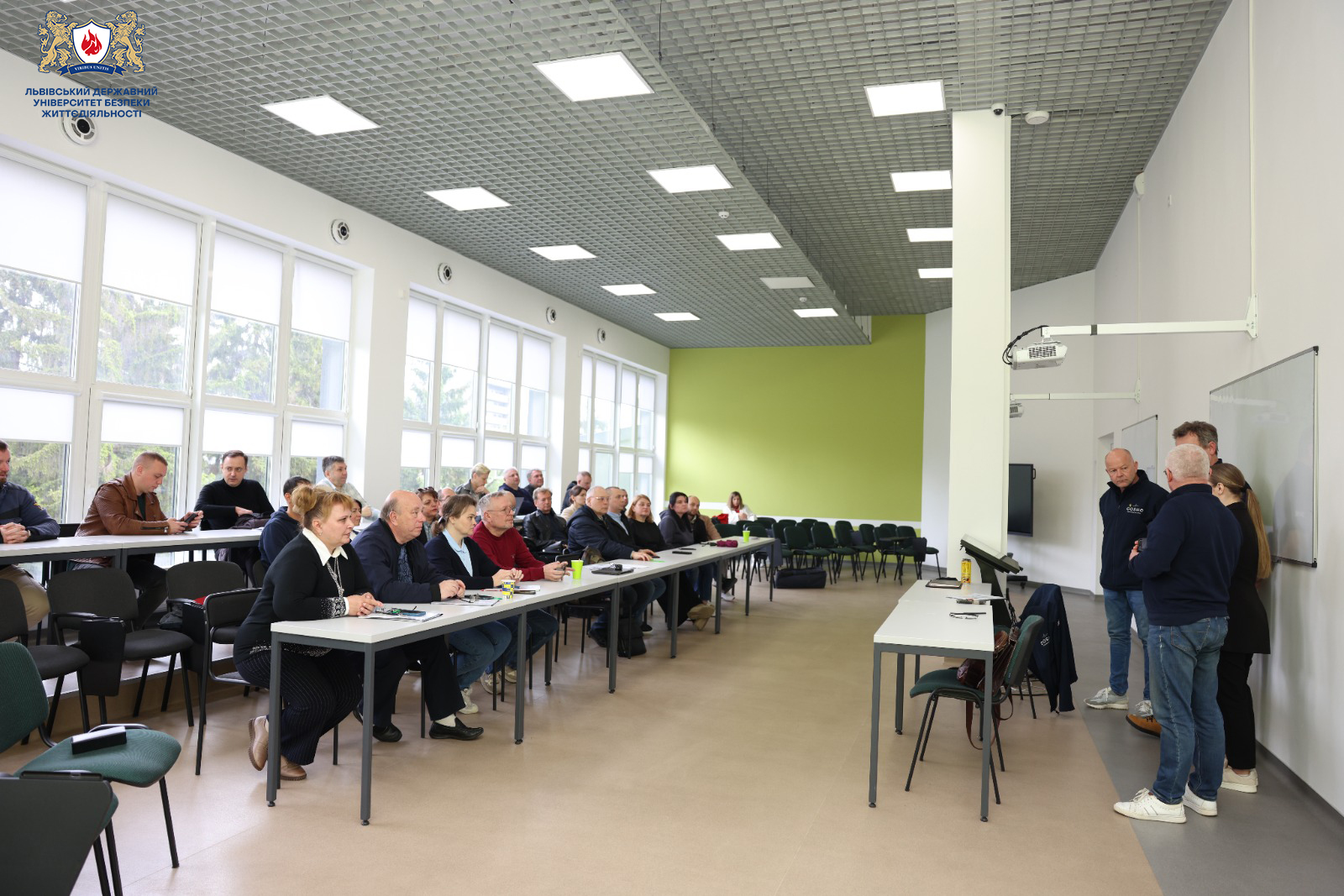 У Львівському державному університеті безпеки життєдіяльності, з нагоди Дня науки в Україні, відбувся триденний інтенсив-тренінг з управління ризиками під час виконання робіт поблизу підземних комунікацій та в замкнених просторах. Практичний формат тренінгу включав кейси, вправи та моделювання сценаріїв реальних ситуацій. Проведення навчання забезпечили досвідчені тренери — Іан Харпер та Алекс Хітч. Програма тренінгів охоплювала два основні напрямки: «Управління ризиками при роботах поблизу підземних комунікацій», «Робота в замкнених просторах» (на основі стандартів ILO, OSHA, EBRD). Участь у тренінгу взяли викладачі кафедри промислової безпеки та охорони праці ЛДУ БЖД, а також представники інших закладів вищої освіти: Івано-Франківський національний технічний університет нафти і газу; Національний технічний університет «Дніпровська політехніка»; Технічний університет Метінвестполітехніка; Київський національний університет будівництва і архітектури; Національний університет біоресурсів і природокористування України; Луцький національний технічний університет. Також до навчання долучилися керівники служб охорони праці об’єктів критичної інфраструктури, представники Державної служби України з питань праці, а також профспілки будівельників «ПРОФБУД». Це вже другий подібний тренінг, проведений у стінах ЛДУ БЖД завдяки активній участі міжнародних партнерів, які не лише передають передовий досвід, а й надають гуманітарну допомогу Університету у вигляді сучасного обладнання та приладів, що дозволяє удосконалювати практичну підготовку здобувачів вищої освіти та фахівців з охорони праці.