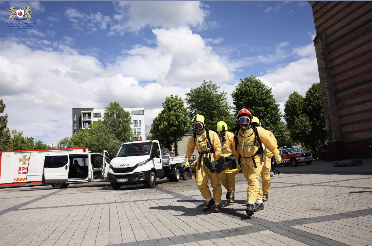 Також для учасників було проведено показову імітацію ліквідації наслідків надзвичайних ситуацій, пов’язаних із медико-біологічними та хімічними загрозами.