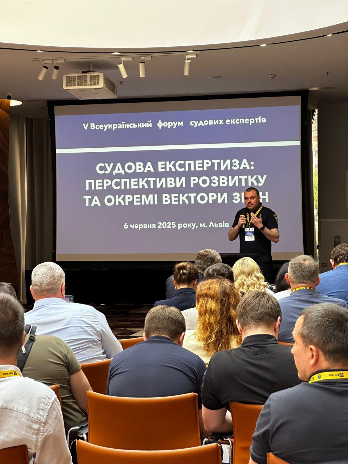 6 червня у Львові відбувся V Всеукраїнський форум судових експертів «Судова експертиза: перспективи розвитку та окремі вектори змін». Метою заходу було обговорення актуальних питань судово-експертної діяльності, обмін досвідом між фахівцями галузі та презентація новітніх досягнень у сфері експертних досліджень. Із вітальним словом виступив проректор з наукової роботи, доктор технічних наук, професор Василь ПОПОВИЧ. Представники ЛДУБЖД Іван АДОЛЬФ, Олександра ЖОРІНА та Тетяна СКИБА презентували сучасне обладнання та можливості науково-дослідної лабораторії пожежної безпеки, а також доповідь «Науково-дослідна лабораторія пожежної безпеки Львівського державного університету безпеки життєдіяльності: специфіка та результати діяльності».