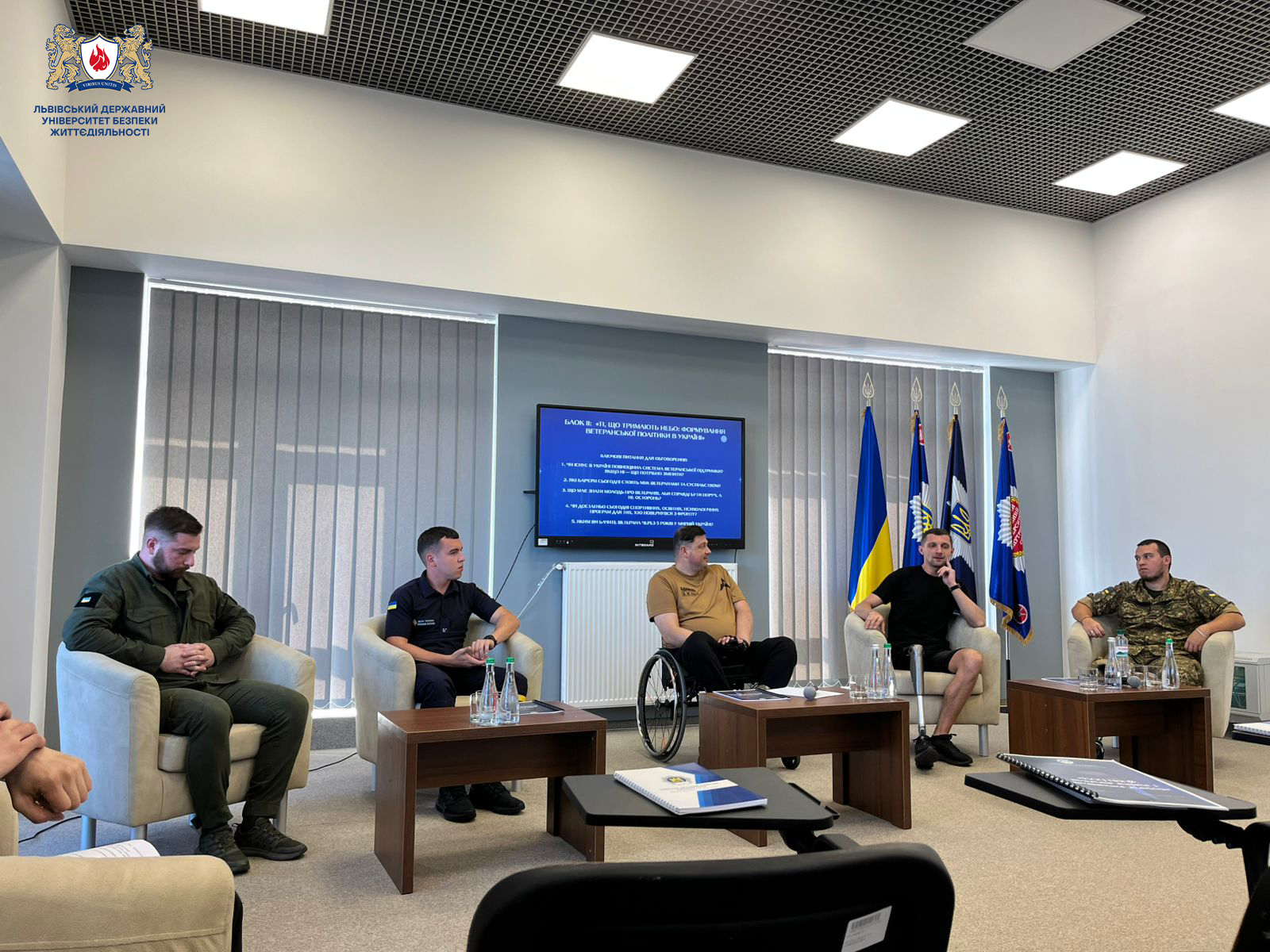 12 серпня у Культурно-просвітницькому центрі ЛДУБЖД відбулася інформаційна година, під час якої хвилиною мовчання вшанували пам’ять Героїв України та випускників університету, що загинули, захищаючи Батьківщину. Завершальним акордом серії заходів став круглий стіл «Код нації: молодіжна енергія і ветеранська гідність» у Львівському державному університеті внутрішніх справ, який допоміг курсантам глибше усвідомити цінність свободи, важливість шани до подвигу захисників та власну роль у розбудові держави.