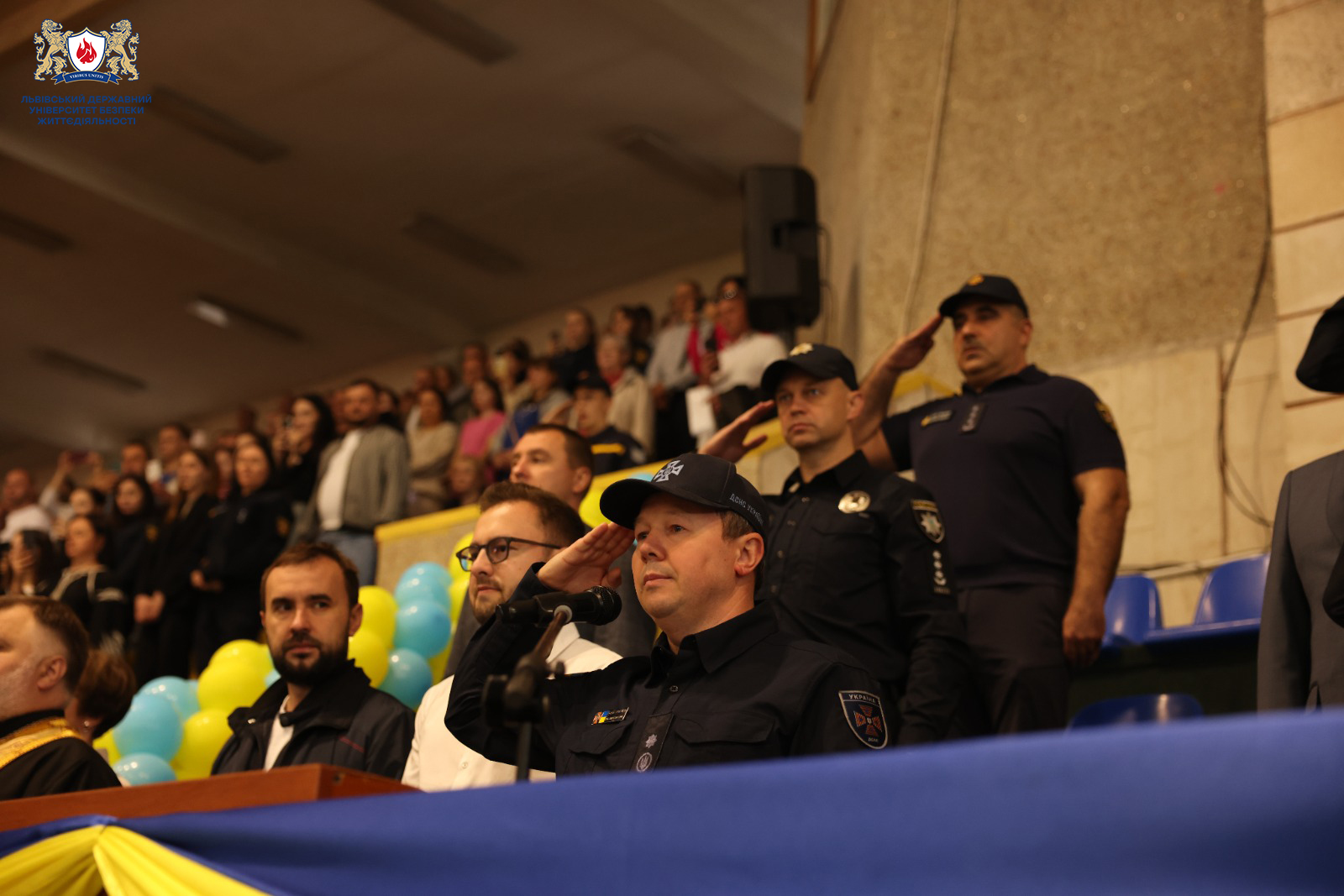 Під звуки Державного Гімну та у присутності керівництва ДСНС України та університету, викладачів, батьків і почесних гостей першокурсники підтвердили свій свідомий вибір – присвятити життя служінню людям, готовності прийти на допомогу у найскладніші хвилини.